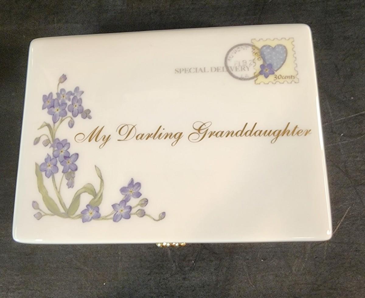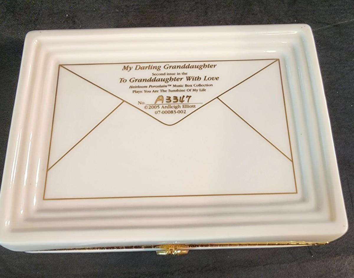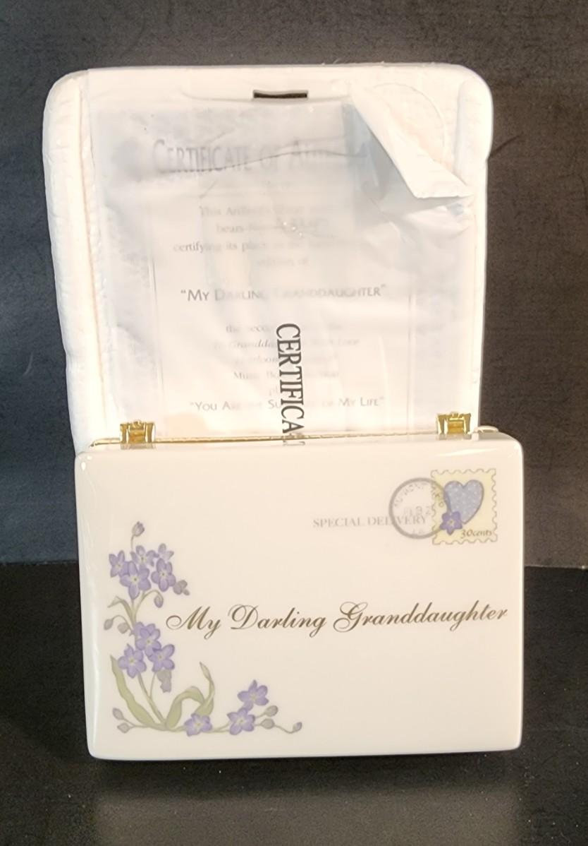 LOT 37:: Ardleigh Elliot NEW with COA Porcelain Music Box- "My Darling Granddaughter"