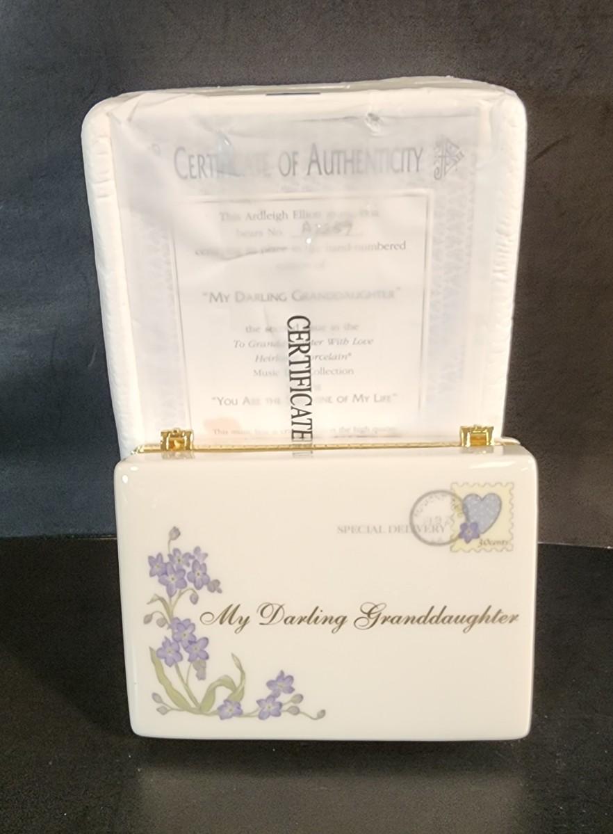 LOT 38:: Ardleigh Elliot NEW with COA Porcelain Music Box- "My Darling Granddaughter"