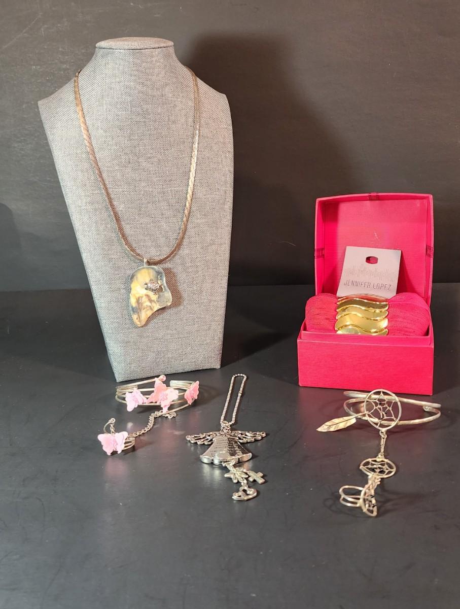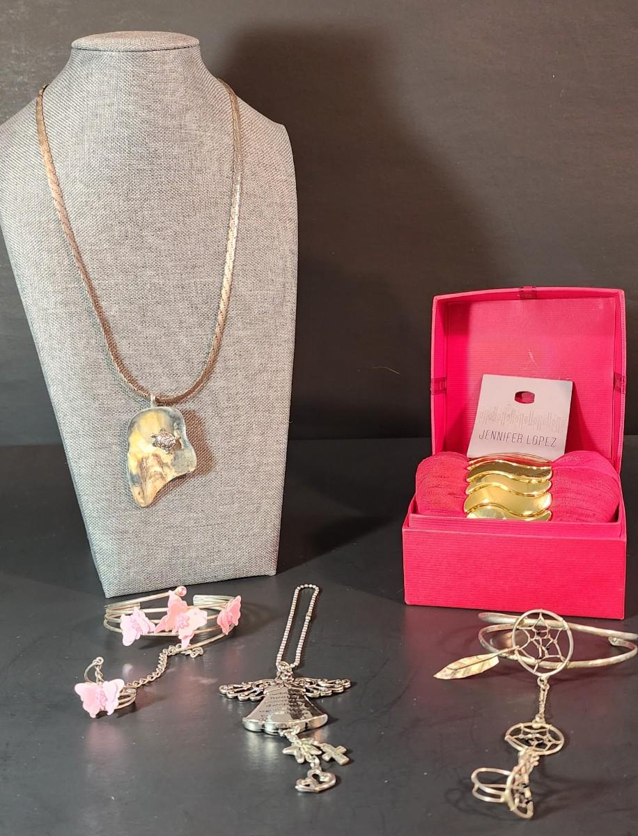 LOT 54:: New in box Jennifer Lopez Bracelet, Two cuff bracelets with attached rings and more