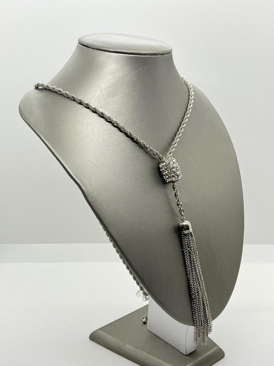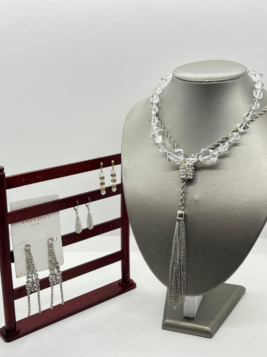 LOT 98: Vintage 16" Trifari Clear Bead Necklace, 30" Silvertone Necklace & More