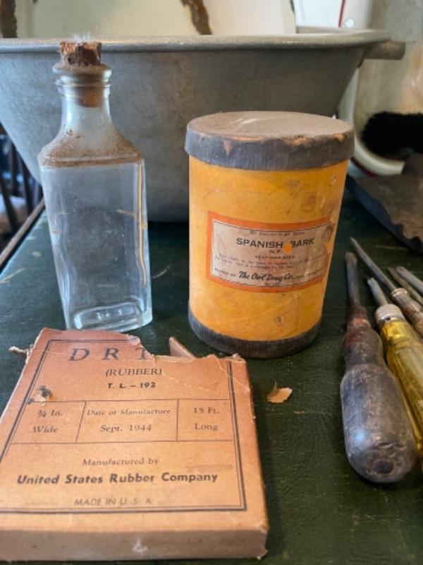 Lot 82K. Assortment of hand tools, enamel basins, screw drivers, brushes, shears, hammer, etc.--Was $55 - -NOW $13.75