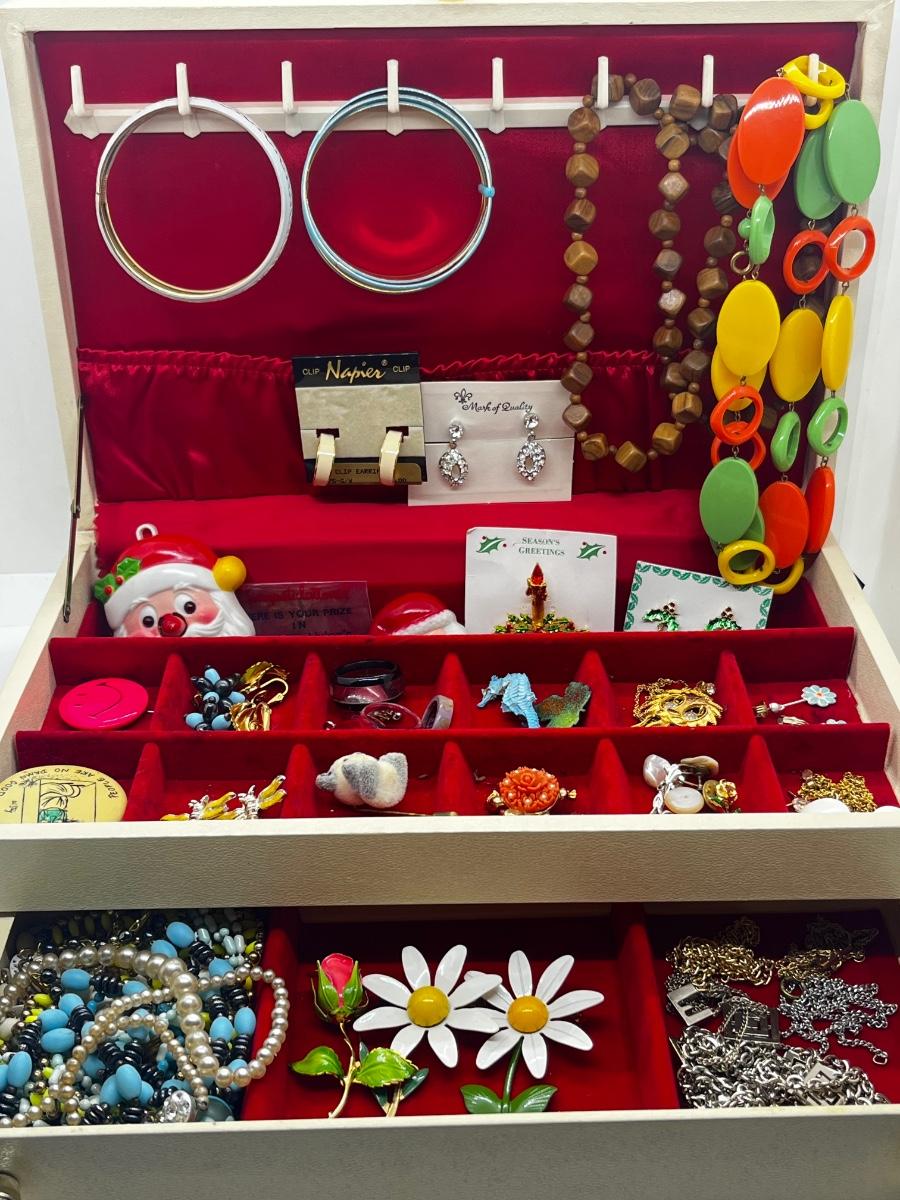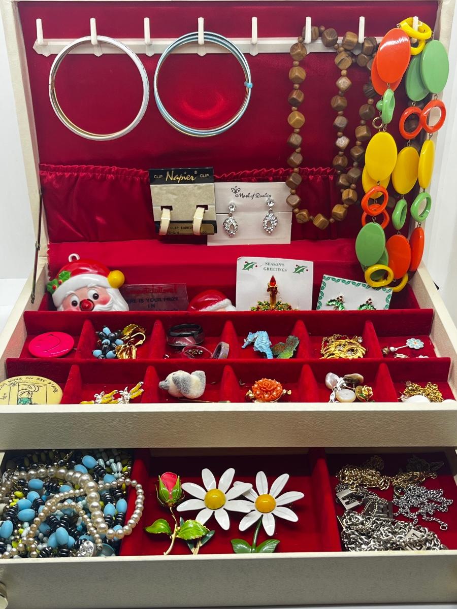 Lot 83: Jewelry Box LOADED with Vintage Costume Jewelry! Necklaces, Pins, Earrings and More!