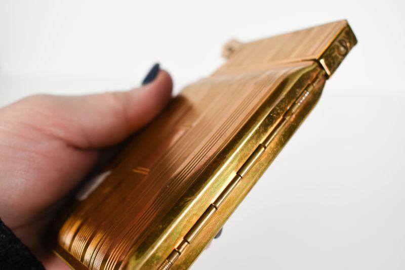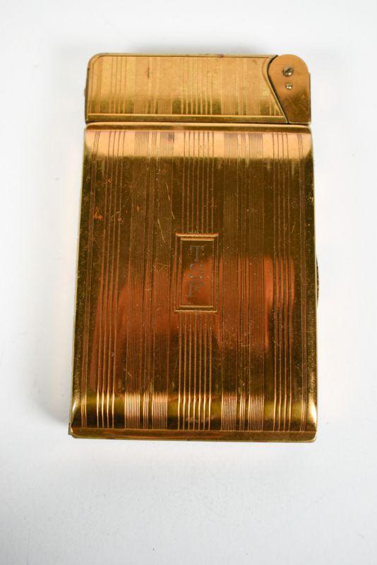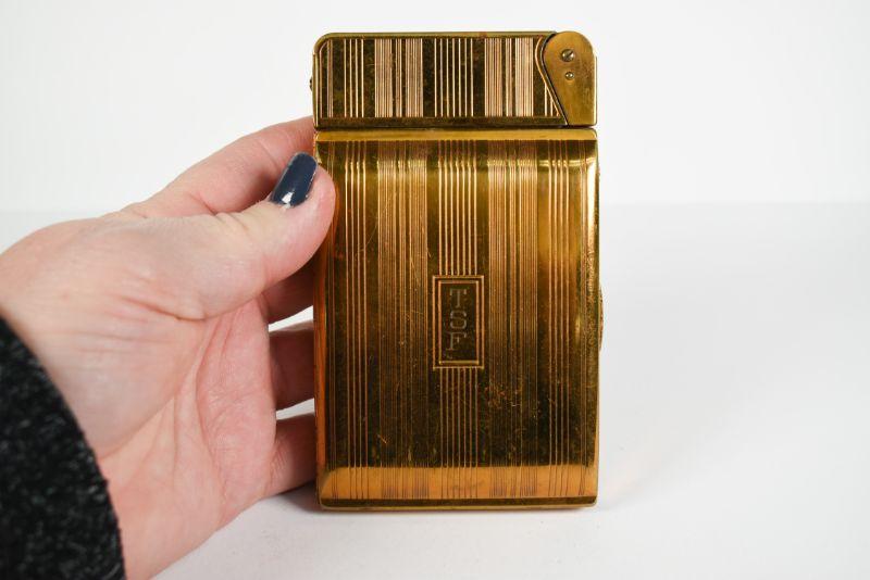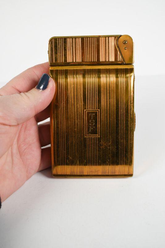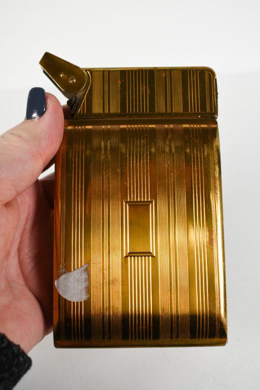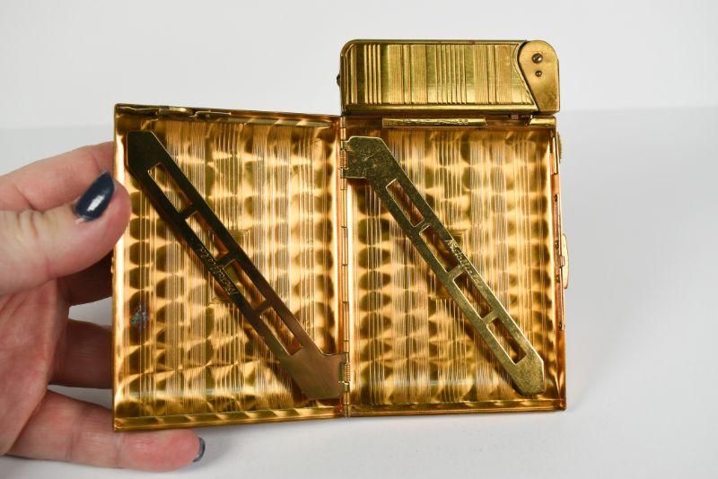 Beautiful art deco cigarette case with lighter. Lighter snaps open after you close the cigarette case. Lighter is untested, but I don't think there is any fluid inside, it's possible this was never used. **Please read Terms and Conditions before placing a bid. Pick up is Sunday, December 22 from 11am to 3pm or Monday, December 23 from 4pm-7pm in Mantua, NJ. All sales are final. All sales are as is, where is. Please review all photos. Props are not included. Measurements are approximate.
