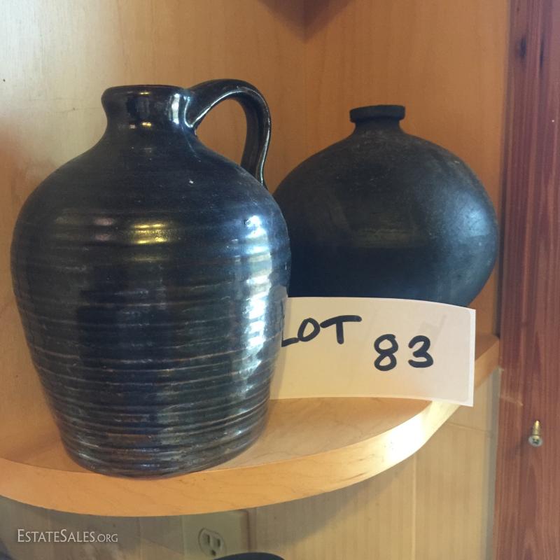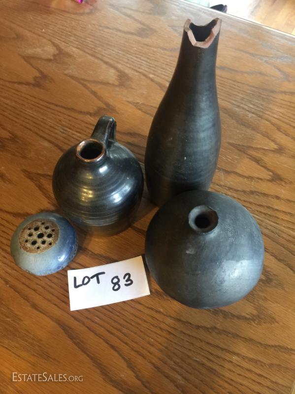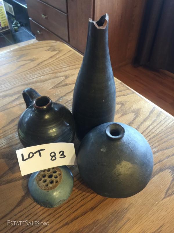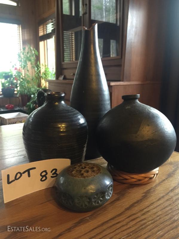 Lot 83  - 4 Misc dark colored ceramic vases and jugs.