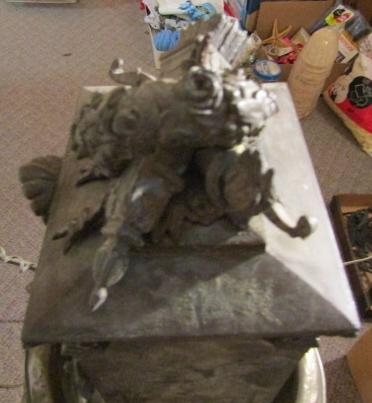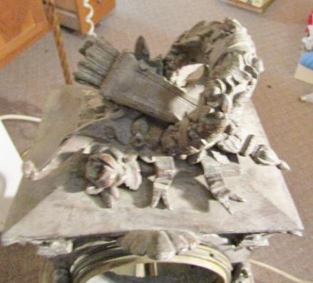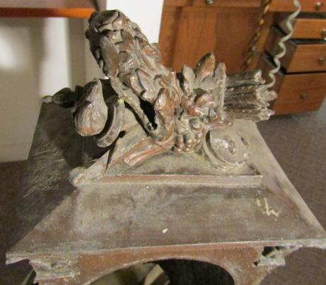 THE PIECE ON TOP IS VERY HEAVY (POT METAL) IT'S GOT GREAT DETAIL AND IS VERY OLD. I BELIEVE IT WAS AN OUTDOOR LIGHT??