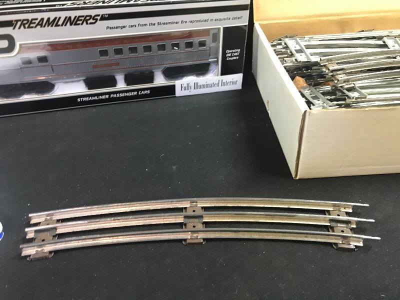Imperial Passenger car and a box of 36 tracks. Please see all pictures for content of the lot, condition of the lot, and measurements if taken. Pictures are the best representation of the items listed and items are untested unless indicated in description. Thank you for looking and have fun bidding!