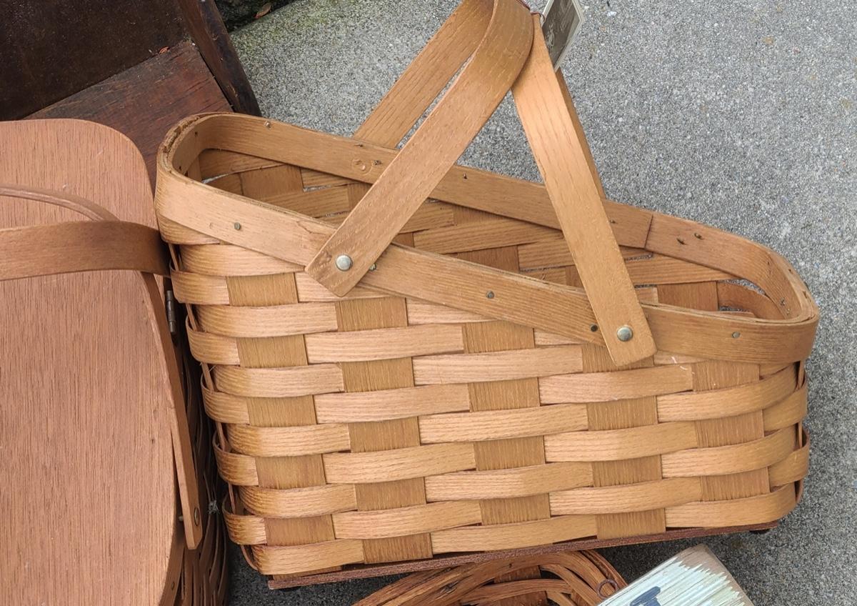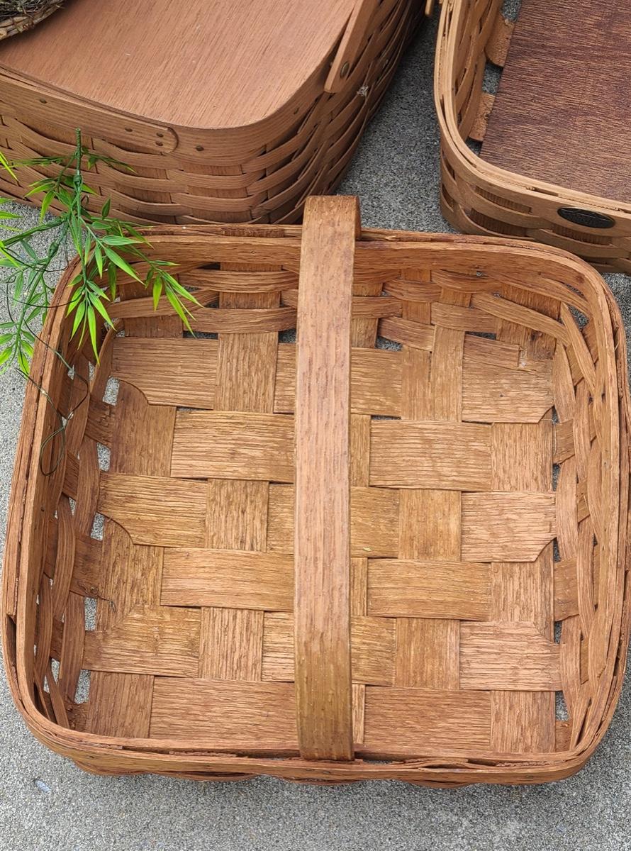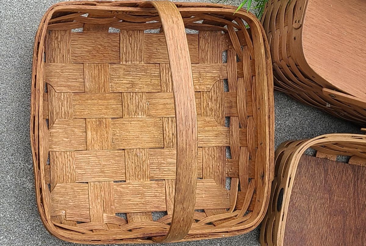 This is a vintage lot of baskets, and they do show some wear. Most have the owners name on as she loved to use them for pies etc. Great for use or home decor. Also a small faux plant decor that is shaped like a watering can that lights up with batteries. May need new light strand, untested. Wood Tray table perfect for a table centerpiece! Please see all pictures for content of the lot, condition of the lot, and measurements if taken. Pictures are the best representation of the items listed and items are untested unless indicated in description. Thank you for looking and have fun bidding!