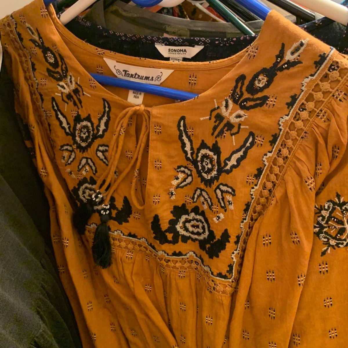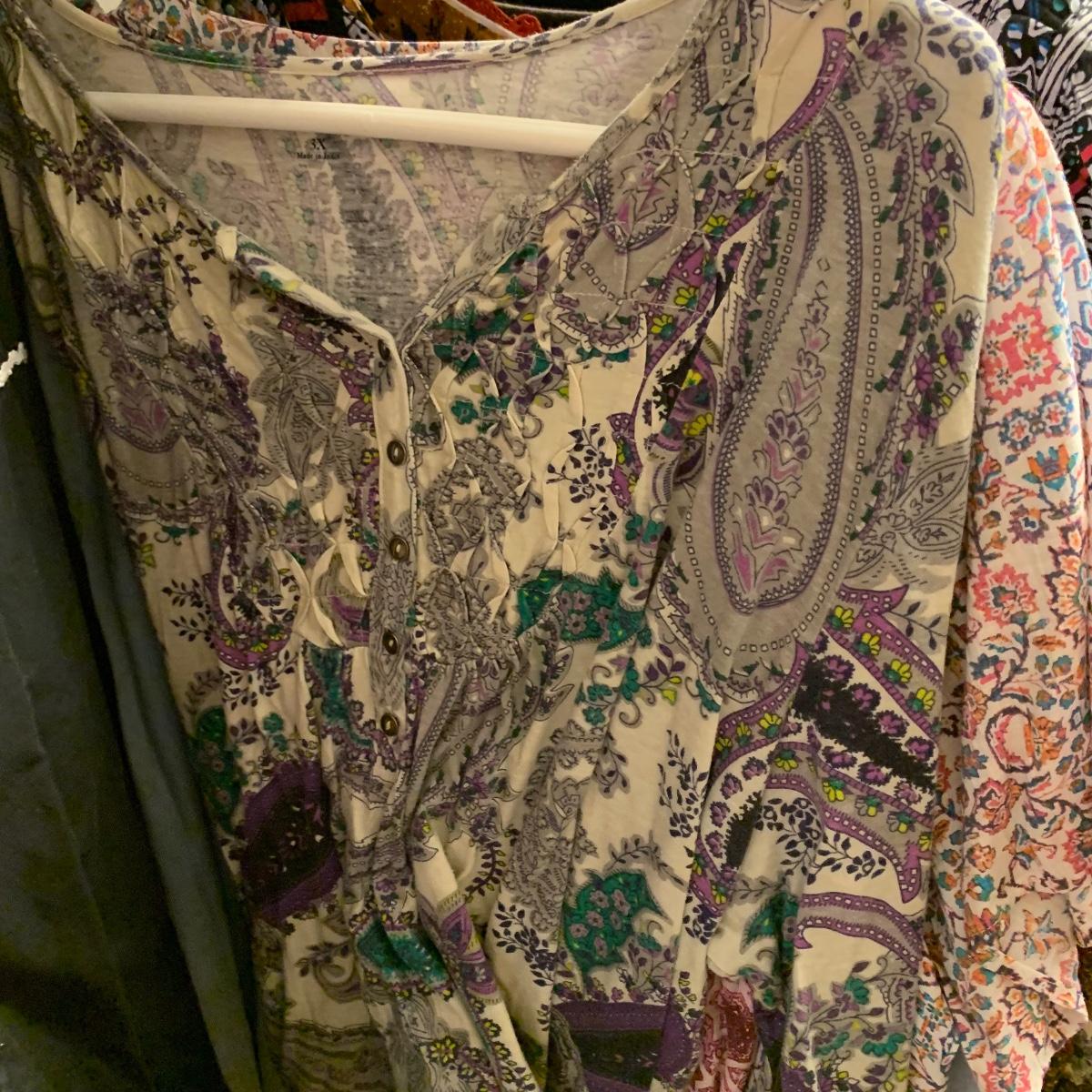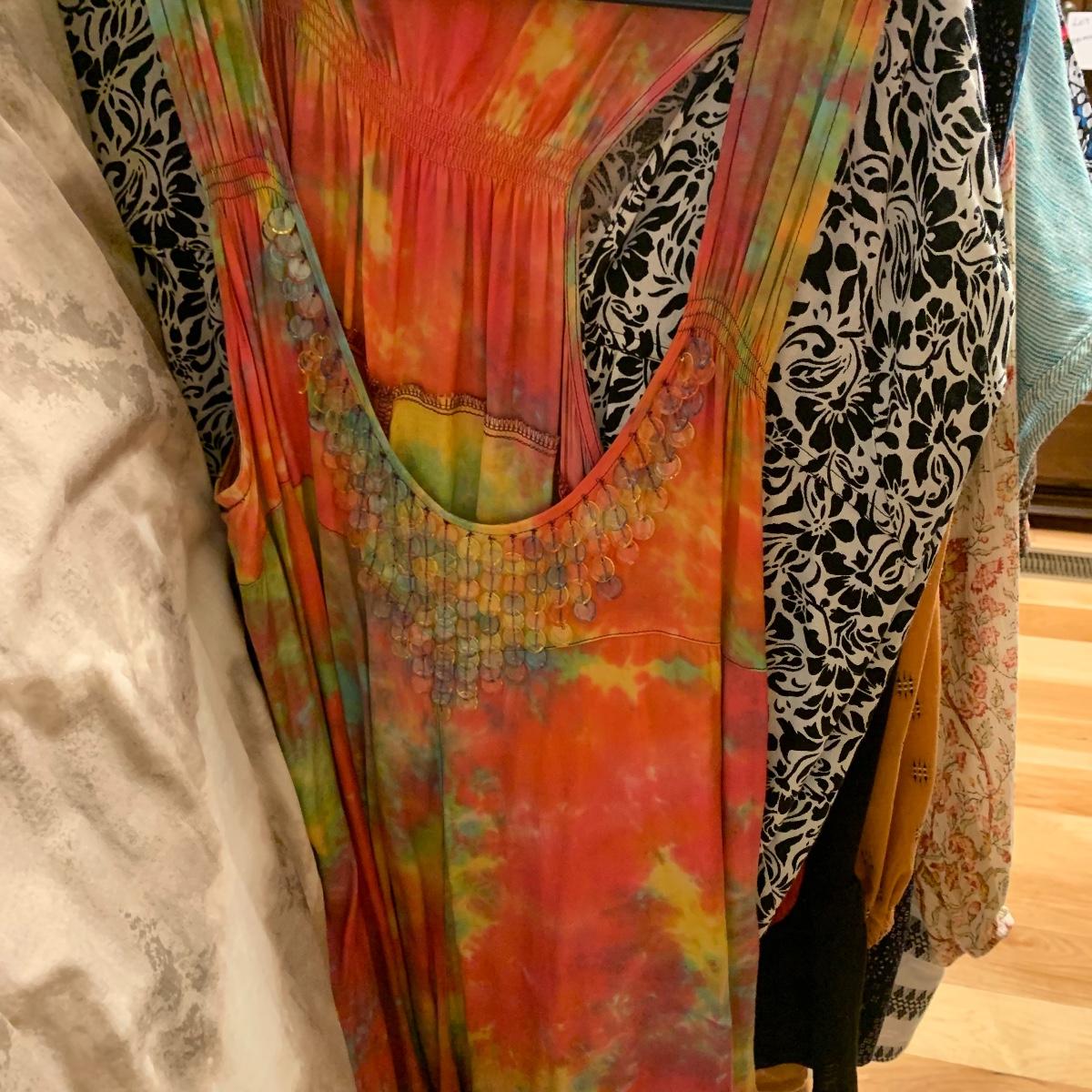 Free spirits take note, this is a great collection of tops and dresses. This lot includes several tye dye bohemian shirts, embroidered dresses, patterns, solid colors, and more. This lot includes the brands Champs, True Craft, Denim 247, Sonoma, Cato and more. All garments appear to be in good, clean condition, and are mostly size X3. Local