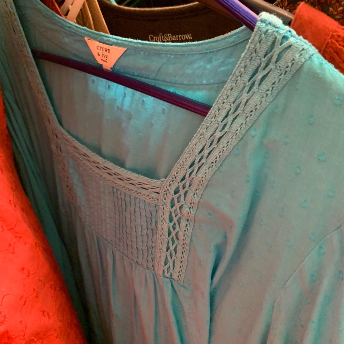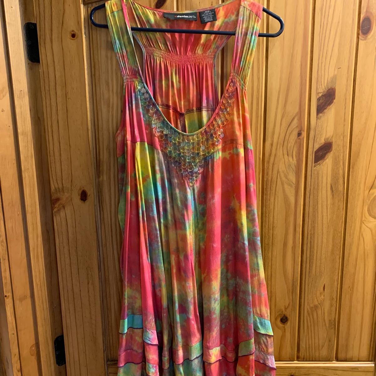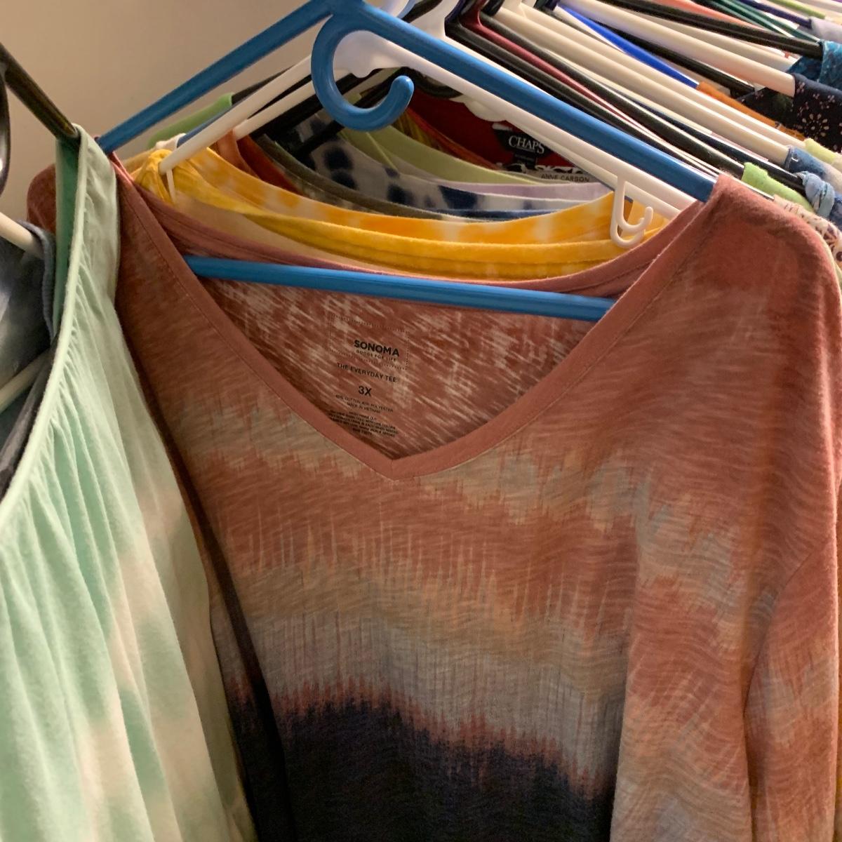 Free spirits take note, this is a great collection of tops and dresses. This lot includes several tye dye bohemian shirts, embroidered dresses, patterns, solid colors, and more. This lot includes the brands Champs, True Craft, Denim 247, Sonoma, Cato and more. All garments appear to be in good, clean condition, and are mostly size X3. Local