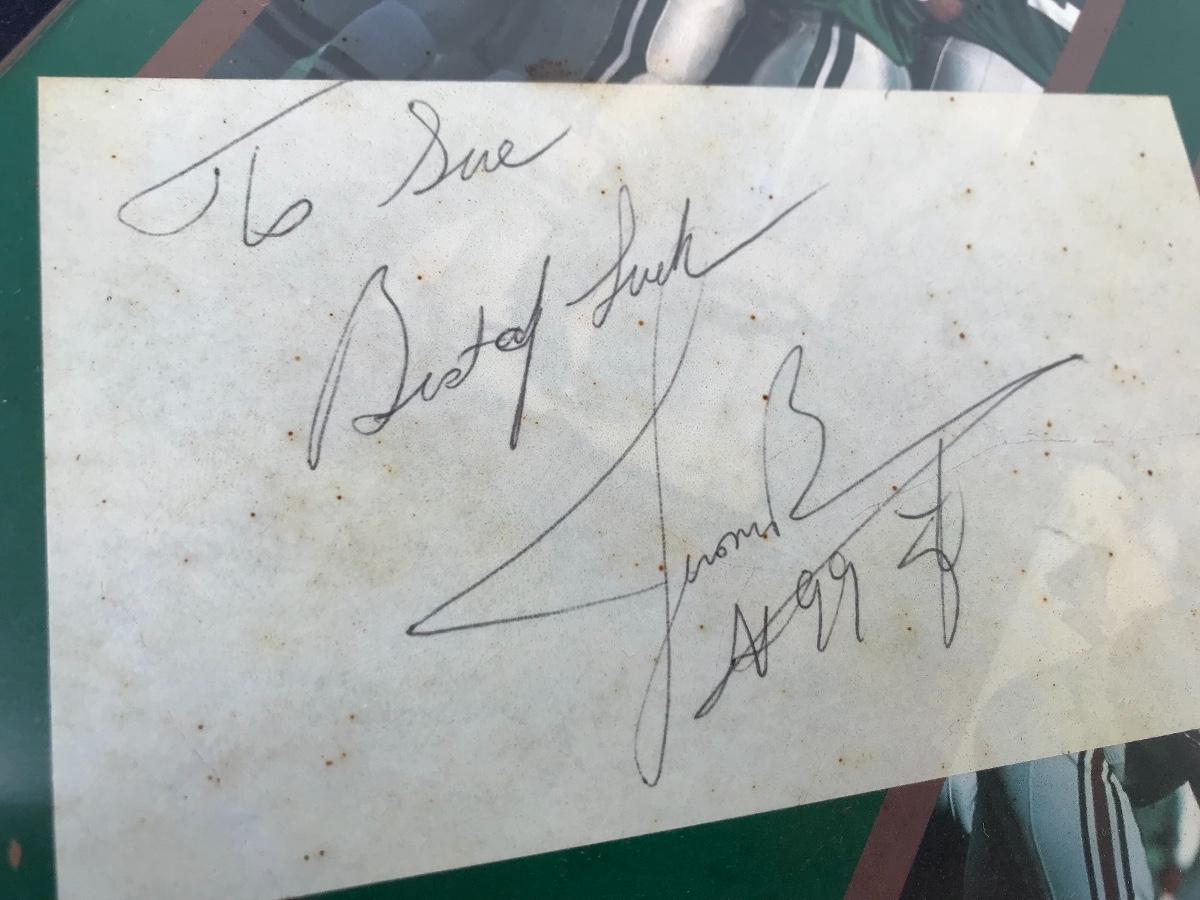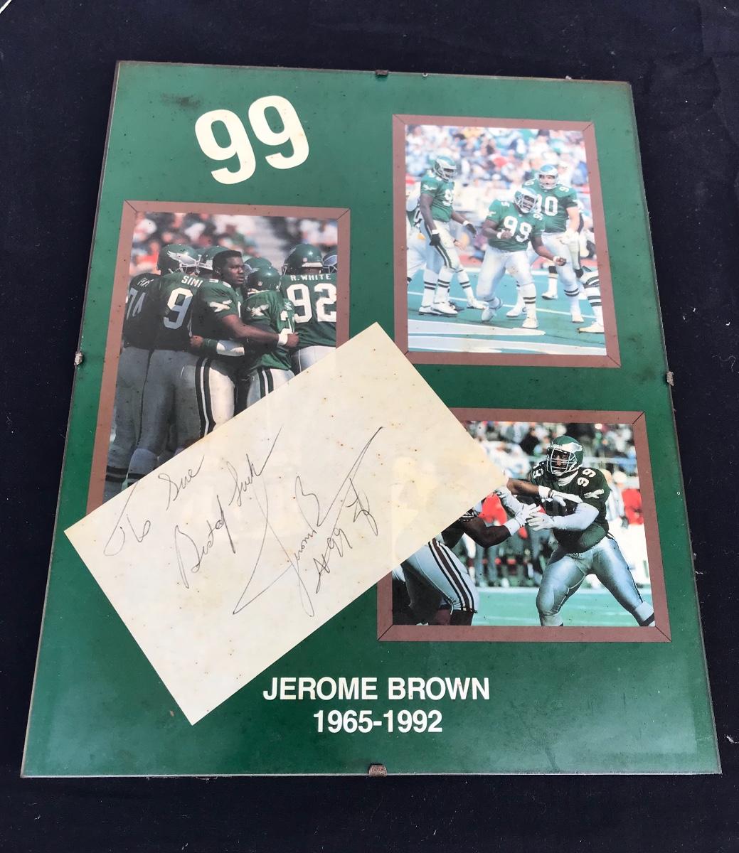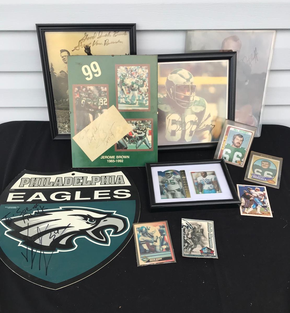 Autographs and memorabilia from a number of Philadelphia Eagles players including Bill Bergey, Jerome Brown, Jeremiah Trotter and more. Please see photos. The pictures show condition, measurements if taken, and what is included in the lot. Due to the large amount that we photograph and the time frame, we are not always able to take measurements. All items unless noted, are pre-owned and have been used. If you purchased furniture, you must bring help. We do not allow one person to carry large furniture out on their own. Bring help, tools and a truck for the safety of our client’s homes, and your personal safety. Company policy. Thank you.