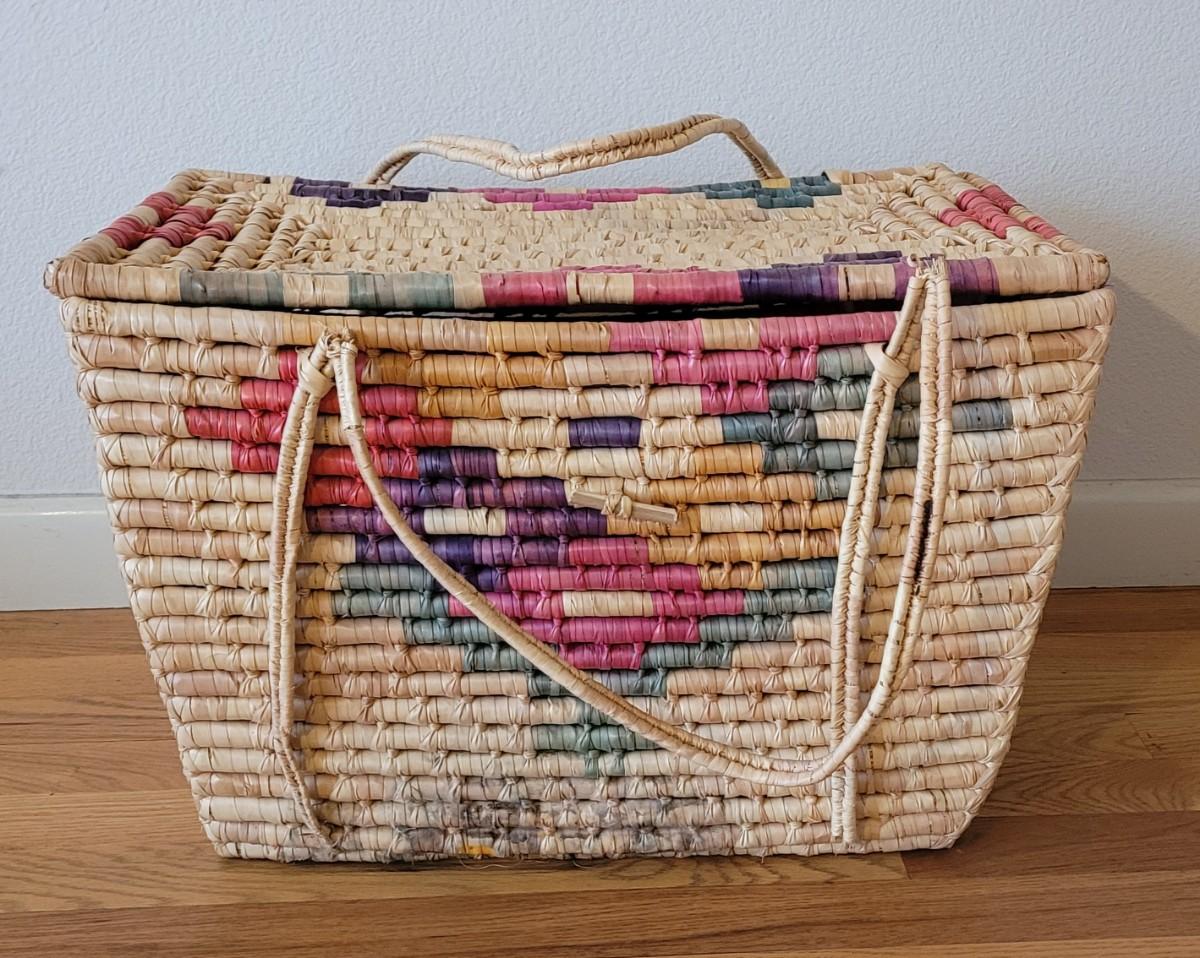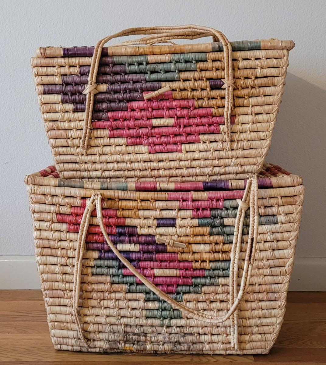 Lot 83: Vintage Mexican Nesting Straw Picnic Baskets