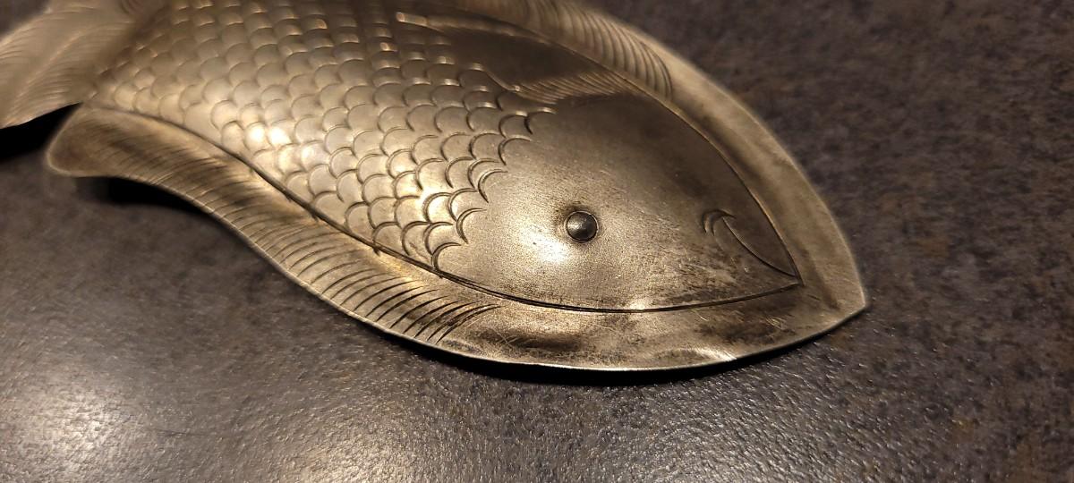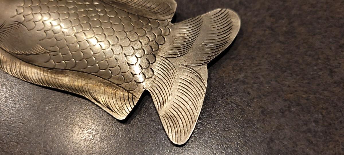 This Vintage Sterling Fish pin has been created by hand and is unsigned. Great size - unpolished patina.