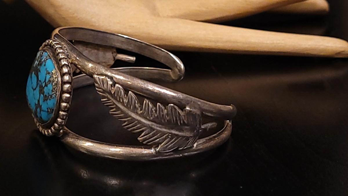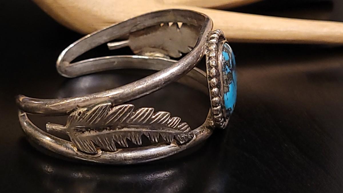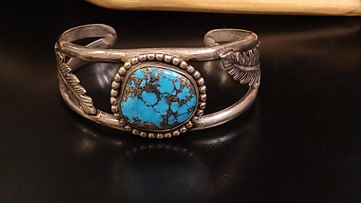 Lot 83: Vintage Native American Sterling & Royston Turquoise Cuff