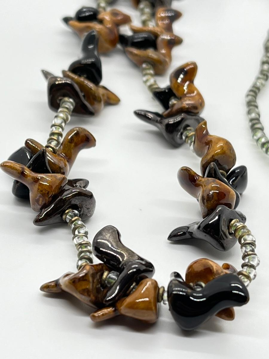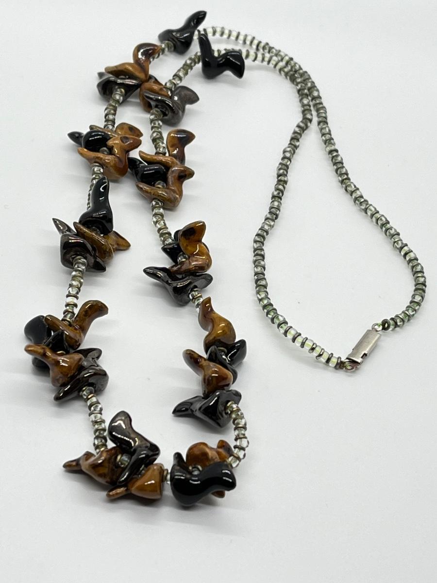 LOT 83: Vintage Glazed Ceramic Pottery 26" Native American Fetish Necklace