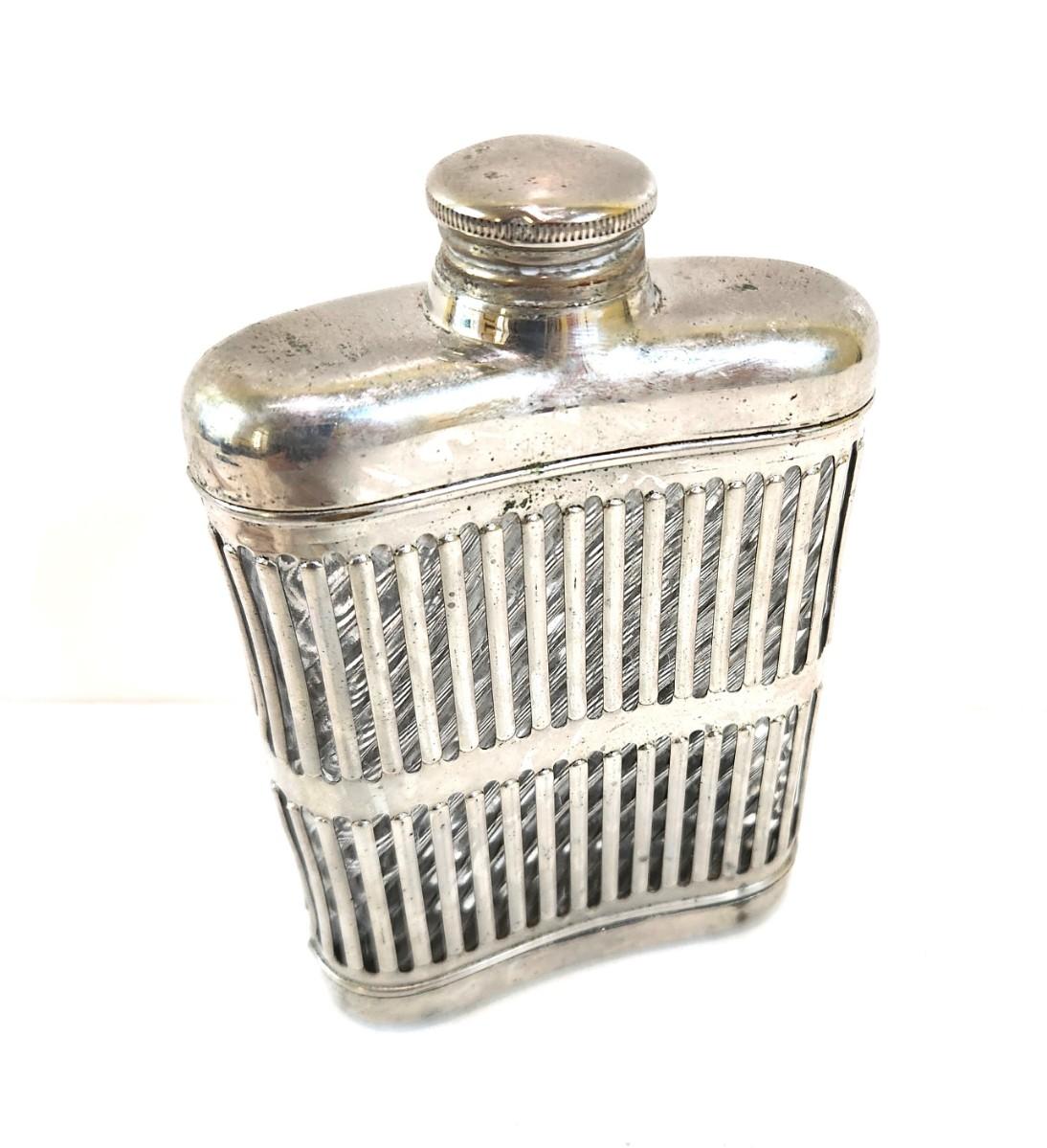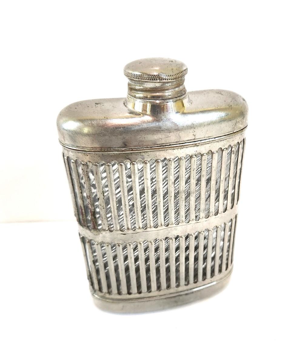 Lot #83 Antique Prohibition-era Chrome Cage Flask