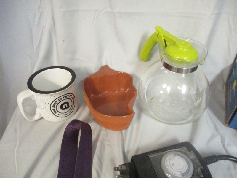 There is a good mixture of household stuff in here. You have dishes to serve dips in, items to make your house more energy efficient, and an outdoor timer.