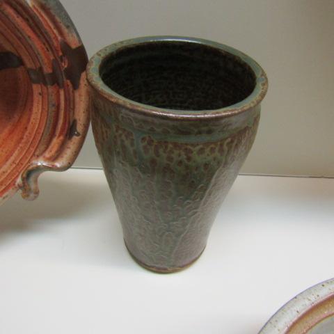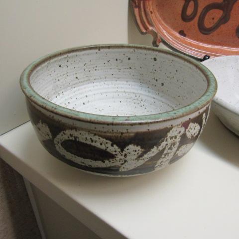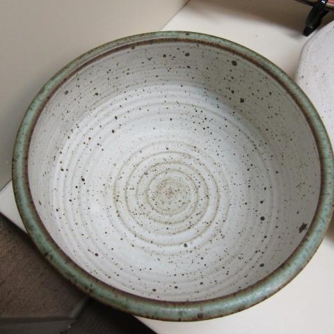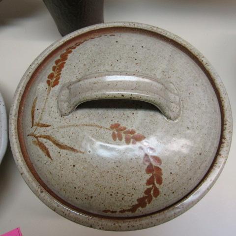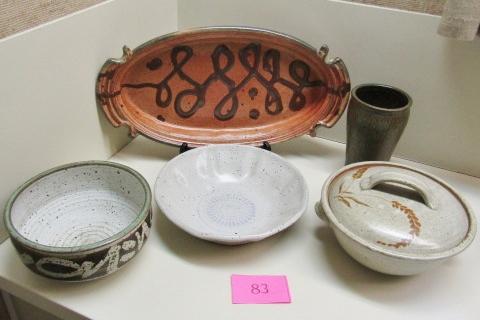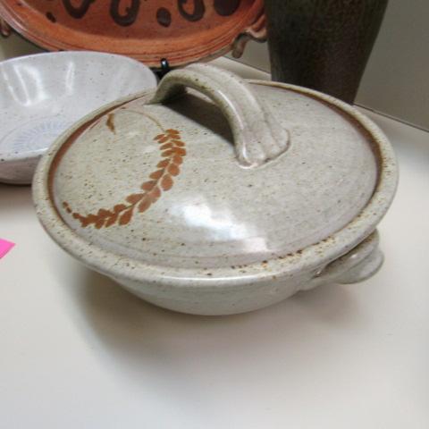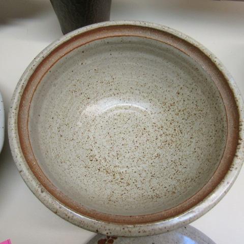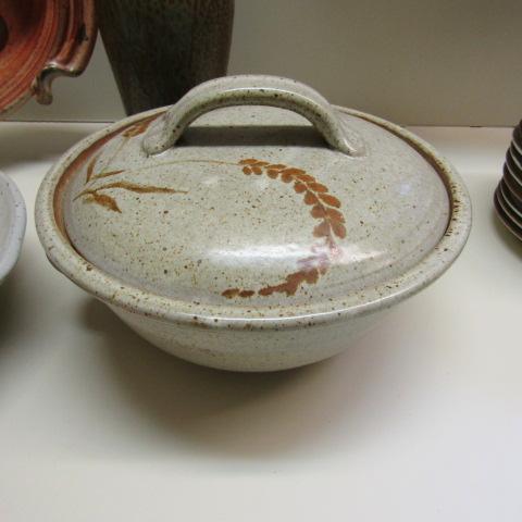 2 BOWLS, CASSEROLE DISH W/LID & CLAY VASE