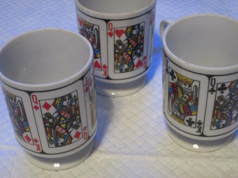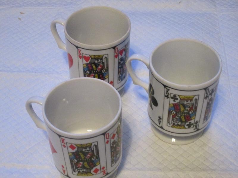 No box - Stacking Poker Mugs Playing Cards Hearts, Clubs and Diamonds