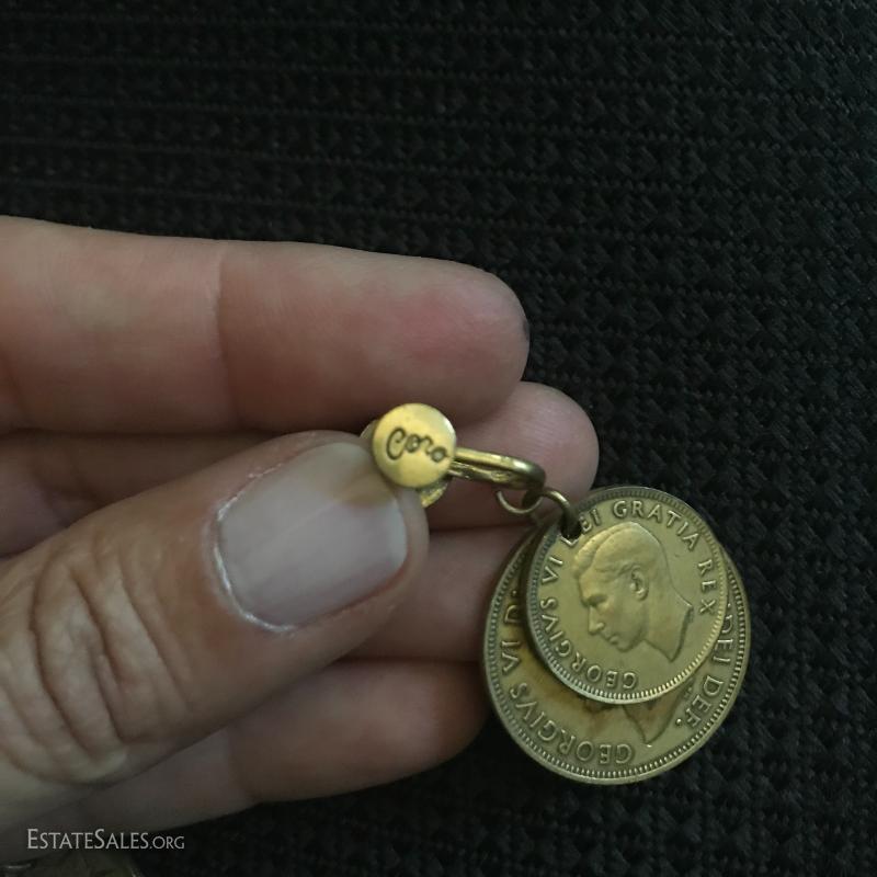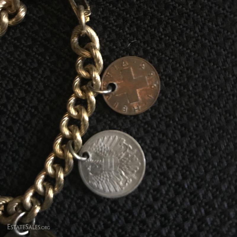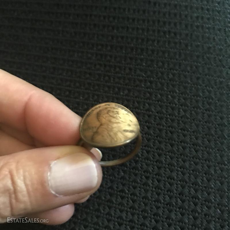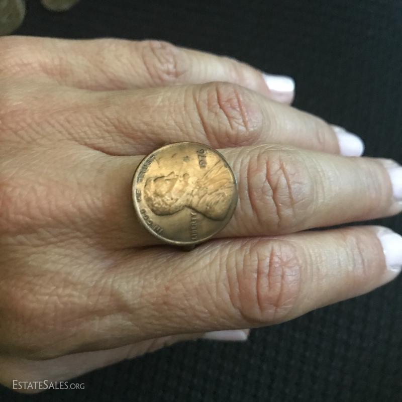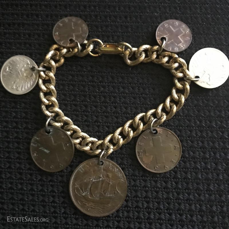 Canadian Coin Bracelet, Coin Pair of earrings (one broken) and Copper 1976 USA Penny Ring (size 7).No markings on any of gold jewelry. We can not verify the authenticity of any of these items. We are stating what is seen to the naked eye. Shipping available or local pick up in Saluda, NC.