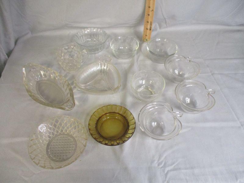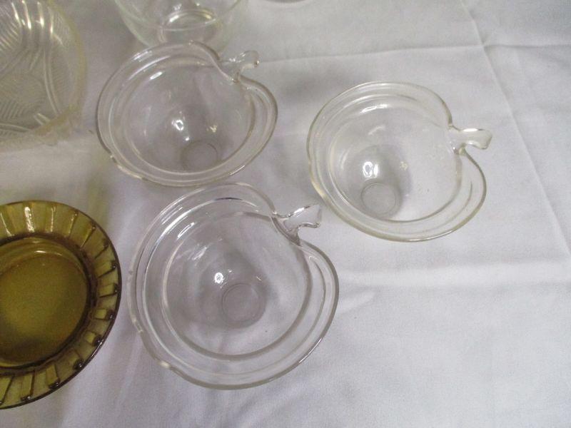 There is a variety of glass in here - three apple custard dishes, a banana split dish, and other pieces. All are in excellent condition..