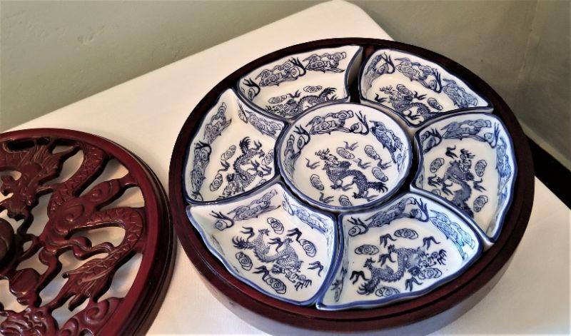 Lot #83  Contemporary Blue/White sectional dish set in the Asian Style - pierced cover