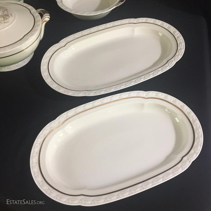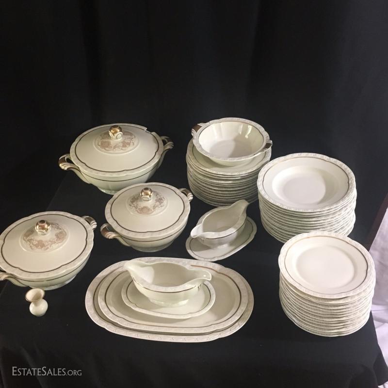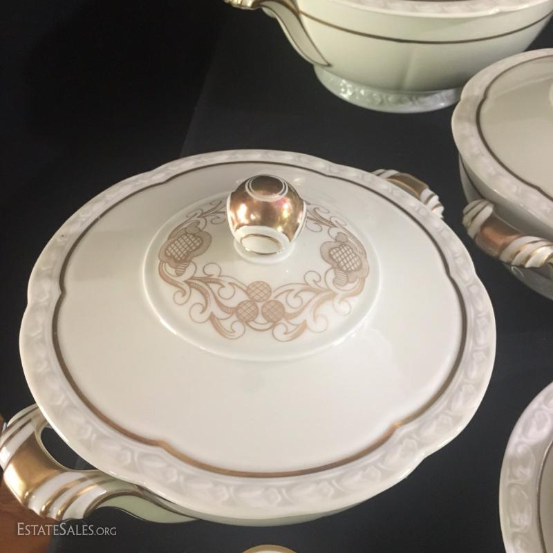 54 piece Edelstein Bavaria Frauenlob China serving pieces and plates. Beige with beautiful gold design. Excellent condition. See photos.