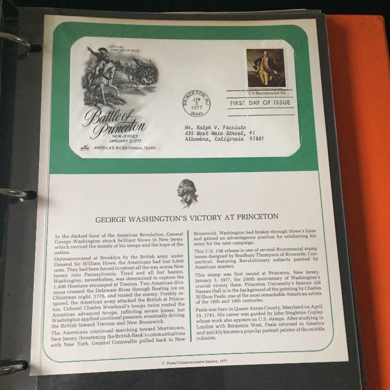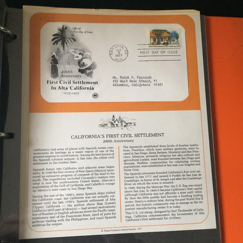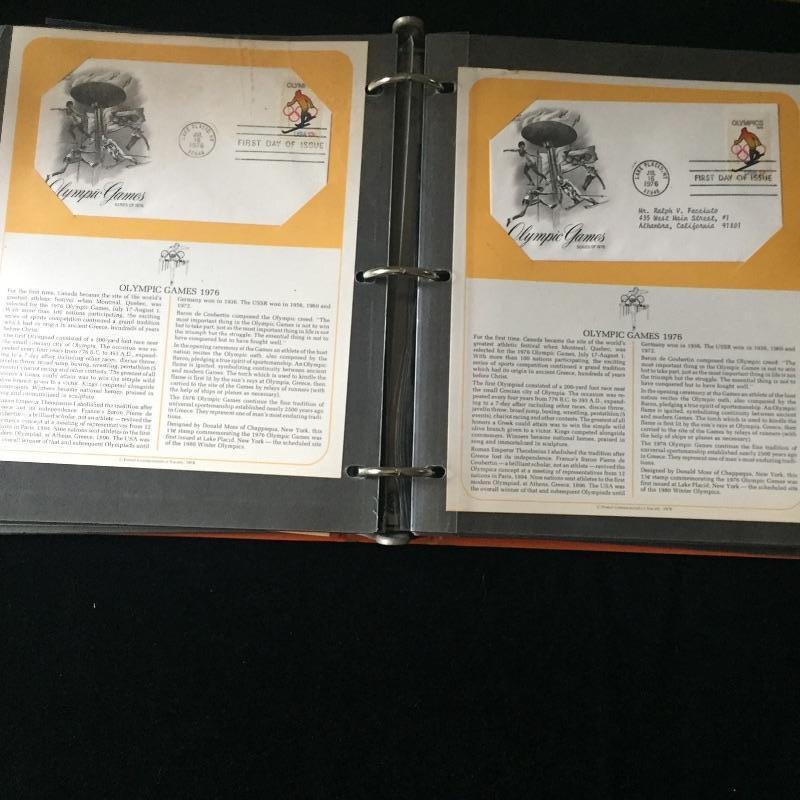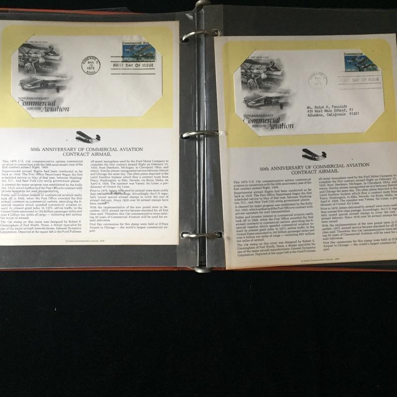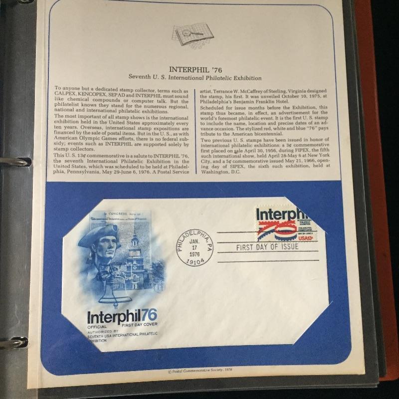 Five Superman comics with first day of issue 1998 Superman stamp with comic. Also include a binder full of over forty first day issue stamps and a Big Band Leaders Stamps and Folder.