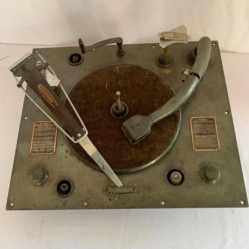 This lot features a rare Garrard RC/2 turntable. The factory base is missing and its could not be tested due to deteriorated electrical cord. See pictures to determine condition.