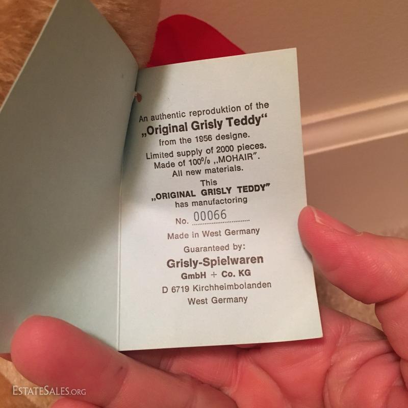 Grisly bear, German tag attached, No: 000066 Grisly - Spielwaren.