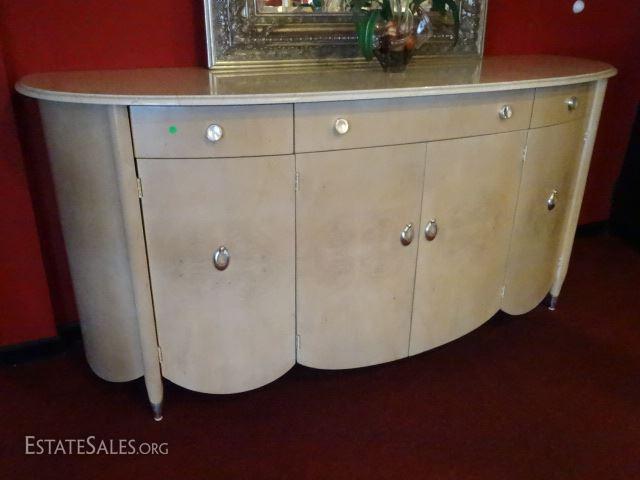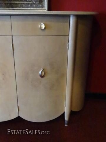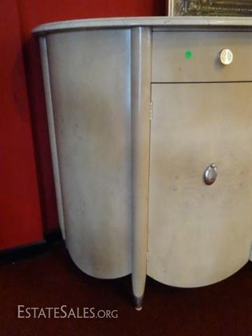 LOT 83: HENREDON MARBLE TOP SIDEBOARD, BOW FRONT, MARBLE TOP