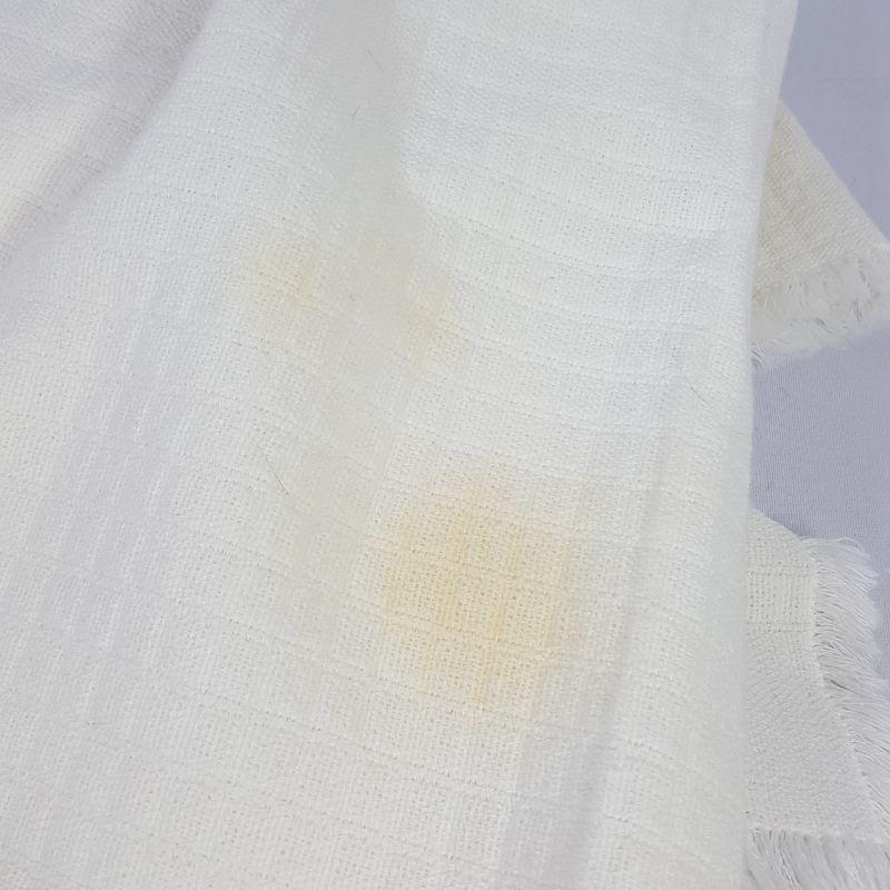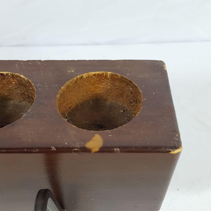 Candle holder was some wear especially on each corner. The table cloth and one napkin has some yellowing spots. See pictures for details. Local pick up only.