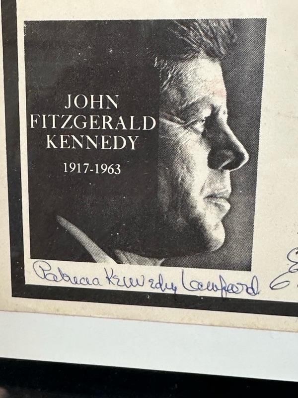Lot 83, JFK postcard signed by various Kennedy family members in Acrylic frame
