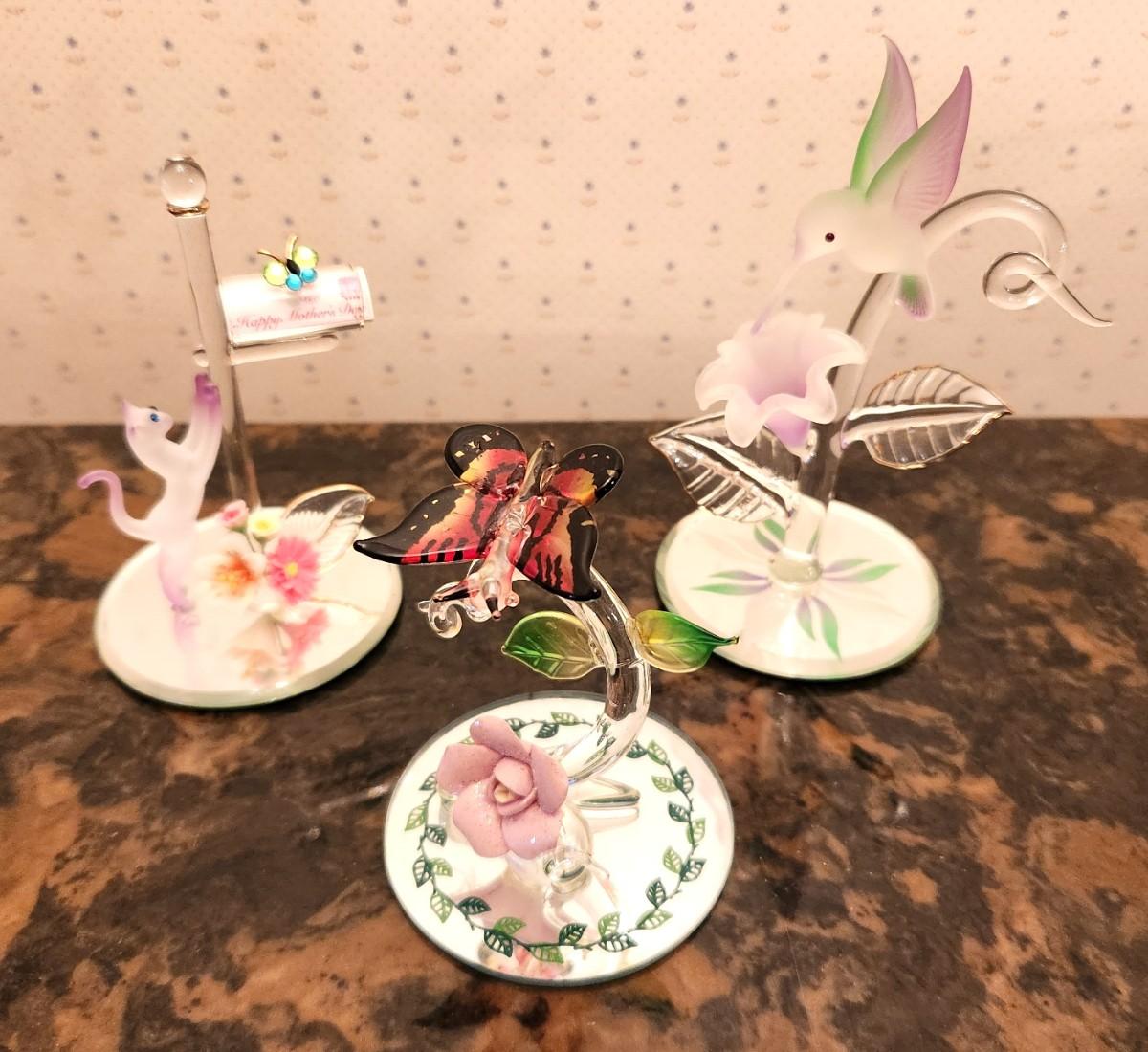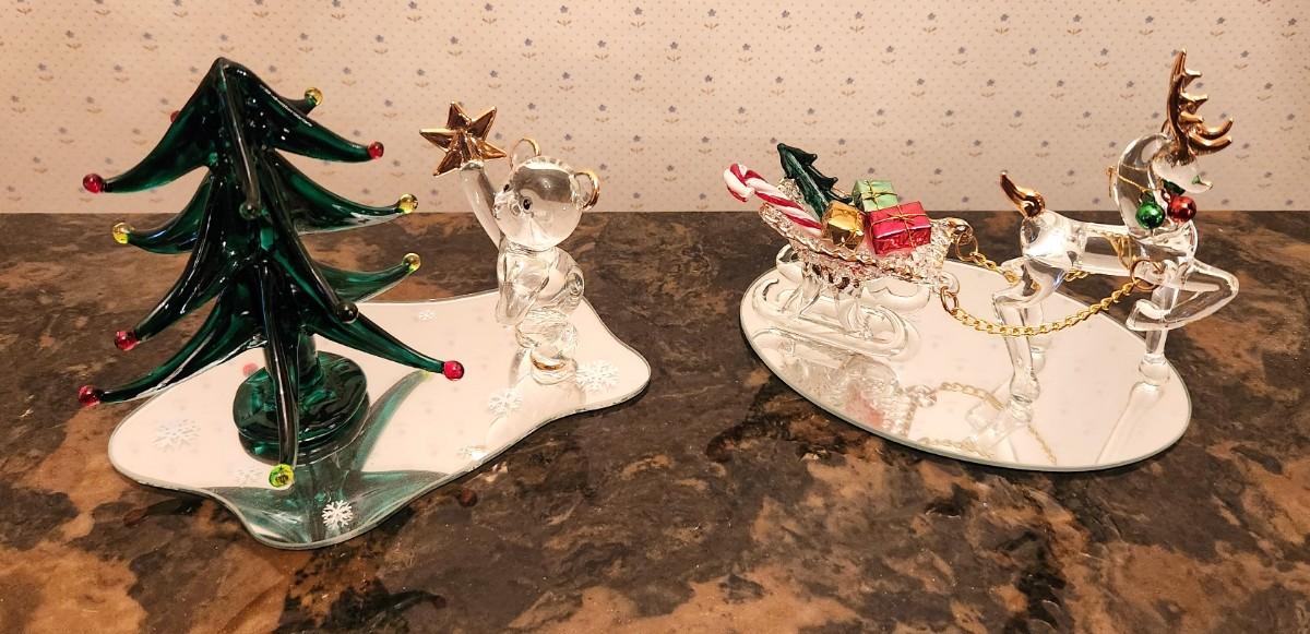 You get all you see here - three crystal figurines, all on mirrored bases. Tallest is 5" tall. All in good condition.