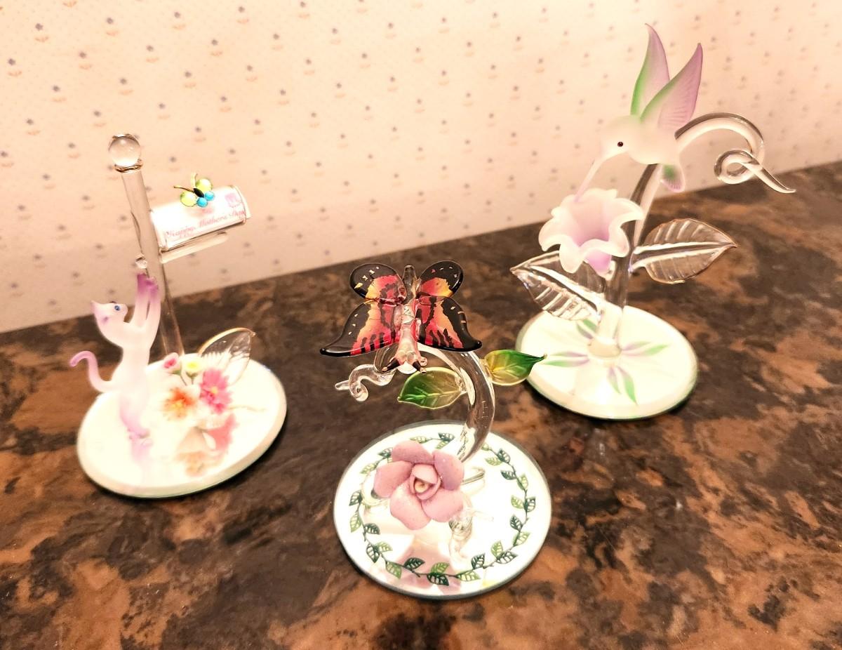 Lot #83 Lot of 3 crystal figurines - each on mirrored base