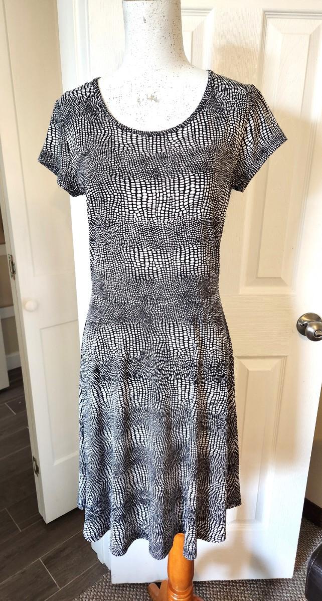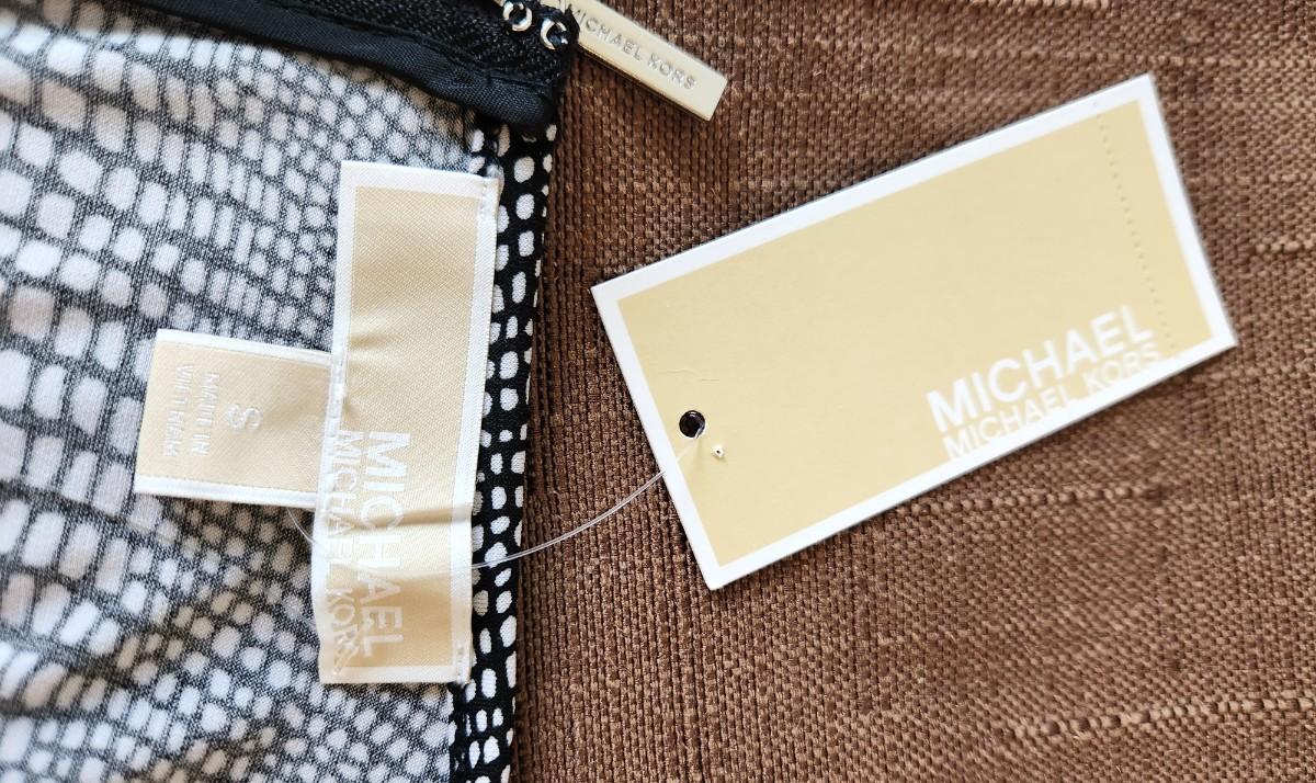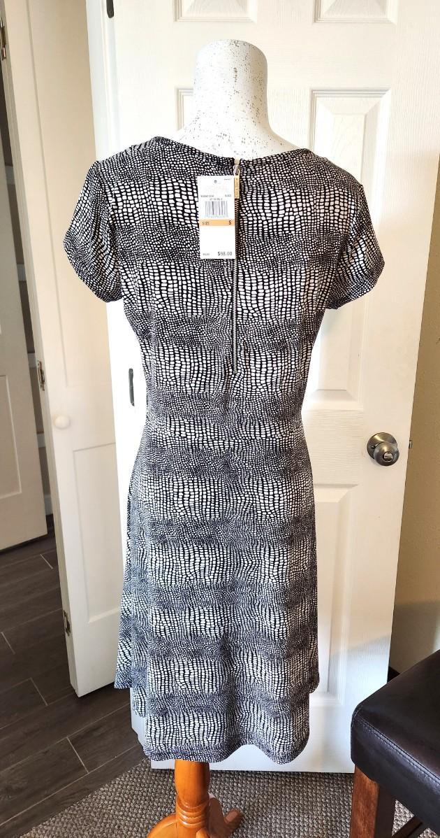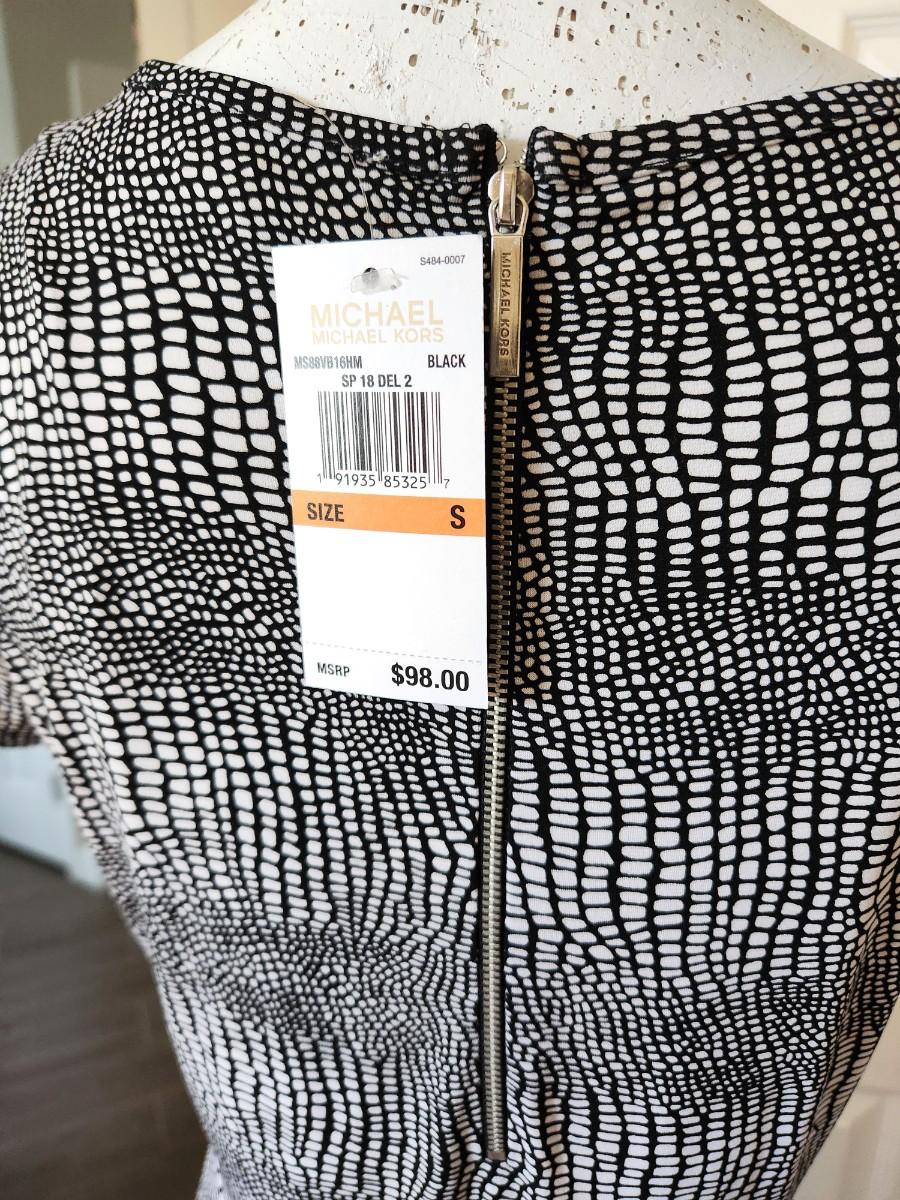 Attractive Michael Kors career dress, size small. Measurements: Pit to Pit 15", length: 3 feet. Excellent condition. Shades of black/gray/white. Brand new with tags.