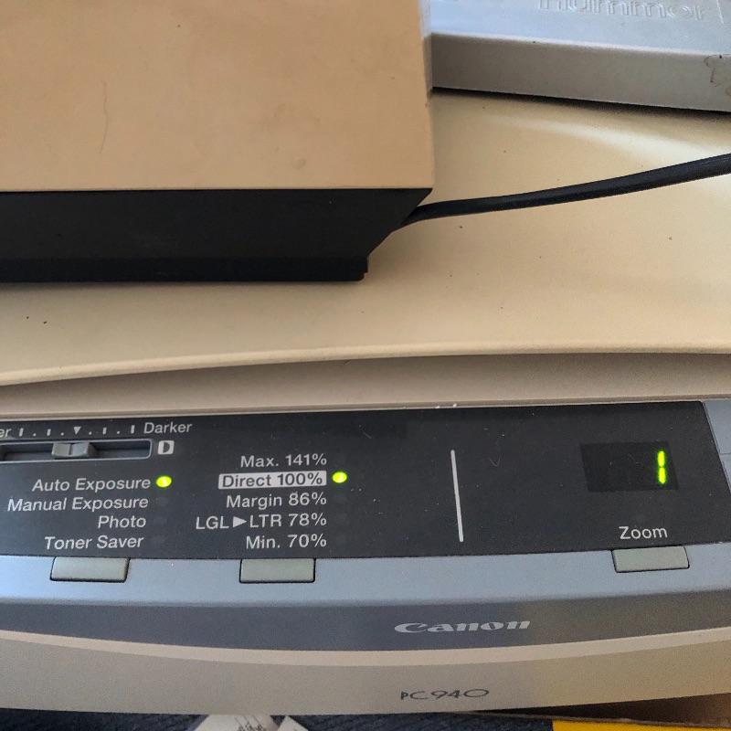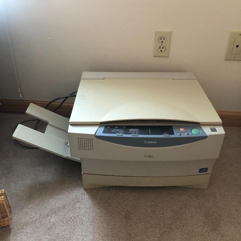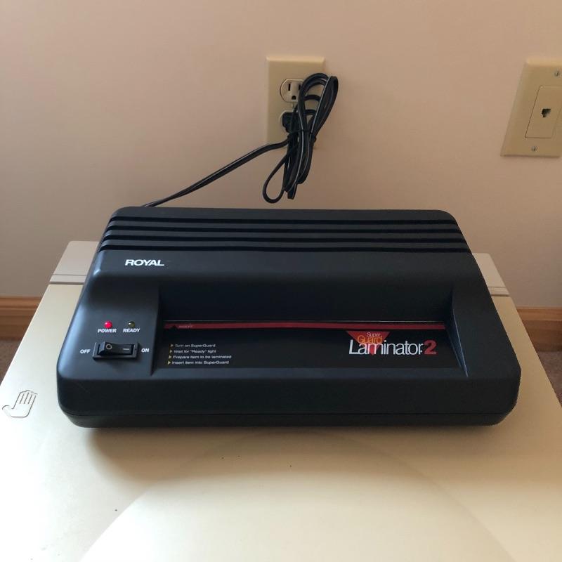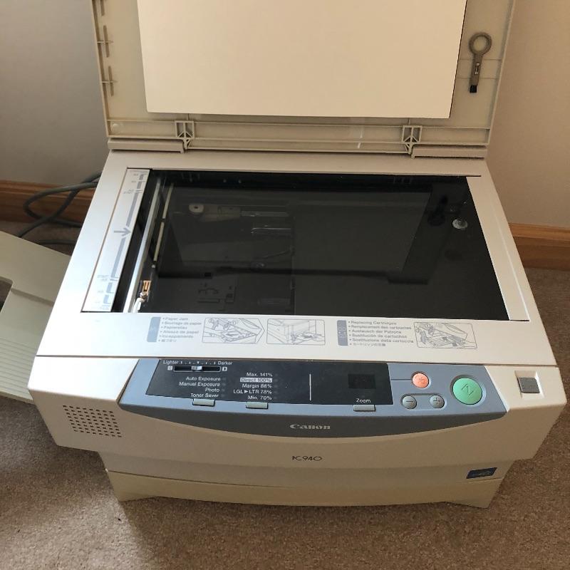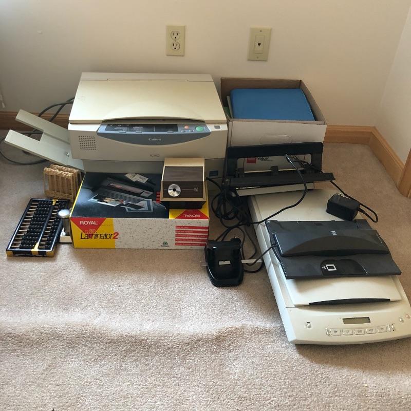 Get your office set up with this selection of office essentials. Lot includes Canon PC940 copier, HP scanner 5479c, Royal Laminator 2, electric pencil sharpener, two triple hole punches, Pilot stapler and a assortment of folders. All electric items powered on when tested.