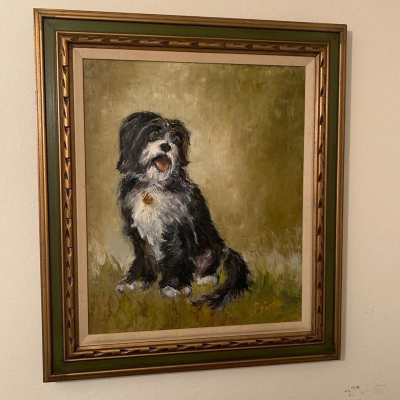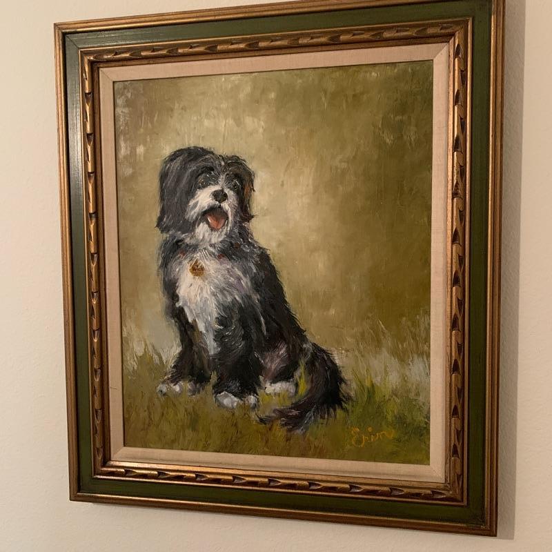 Oil On Canvas Butch The Dog By Erin W27 H31 with wood frame