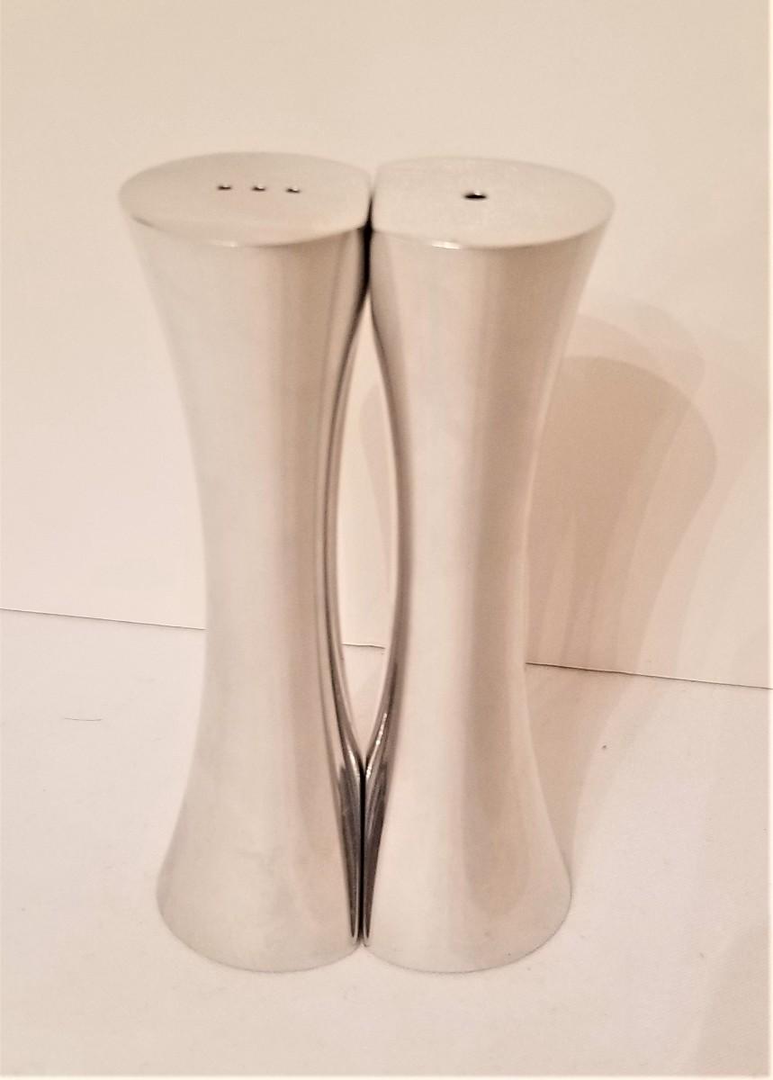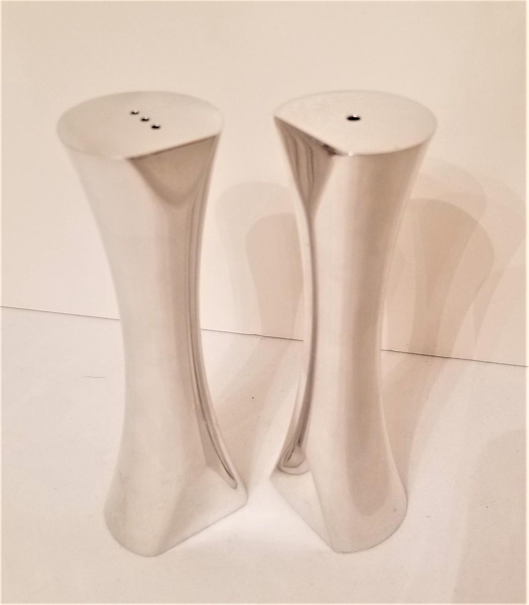 Design Award Winner by Nambe Studios - signed - "Kissing" salt/pepper shakers - metal - each stands 5" tall.