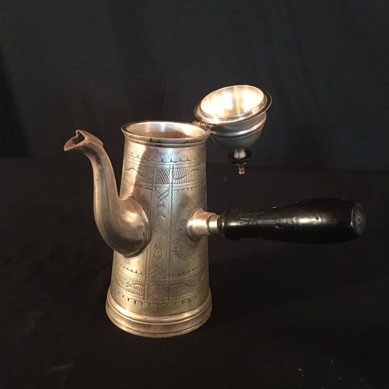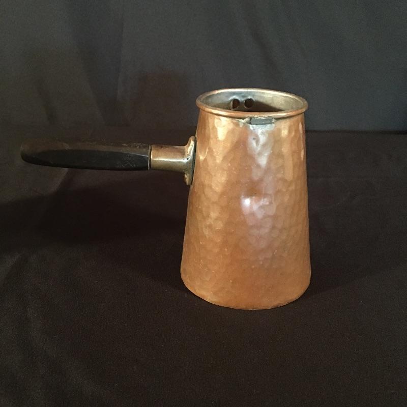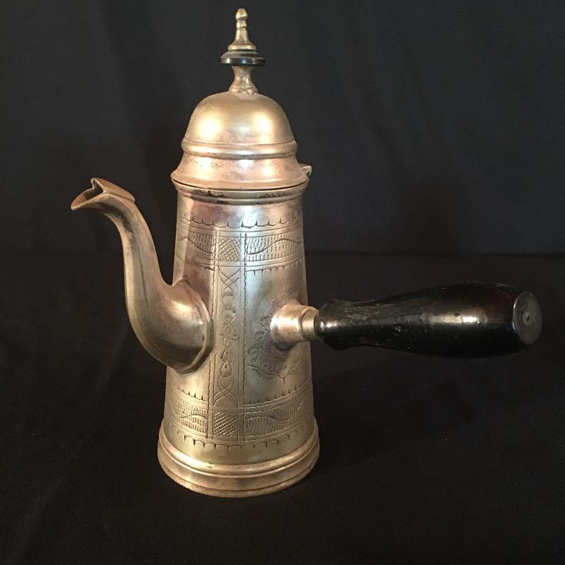 This Pair of straight handled tea kettles includes a hammered copper tea kettle with a flip lid that has had the hinge broken, but seems like a easy repair, see pictures. Also includes a engraved straight handled tea kettle that is marked EPNS and is in excellent condition. Sit back and enjoy a cuppa with these unique tea kettles.