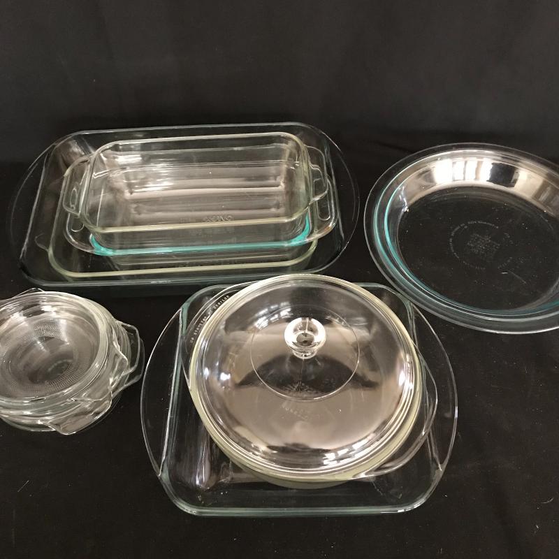 This lot contains Pyrex dishes of all sizes and shapes. Three casserole dishes, two bread pans, two pie pans, and three lidded dishes. Largest casserole dish is 9”l x 13”w. See photos for details. No shipping available. Local pickup only in Flat Rock, NC.