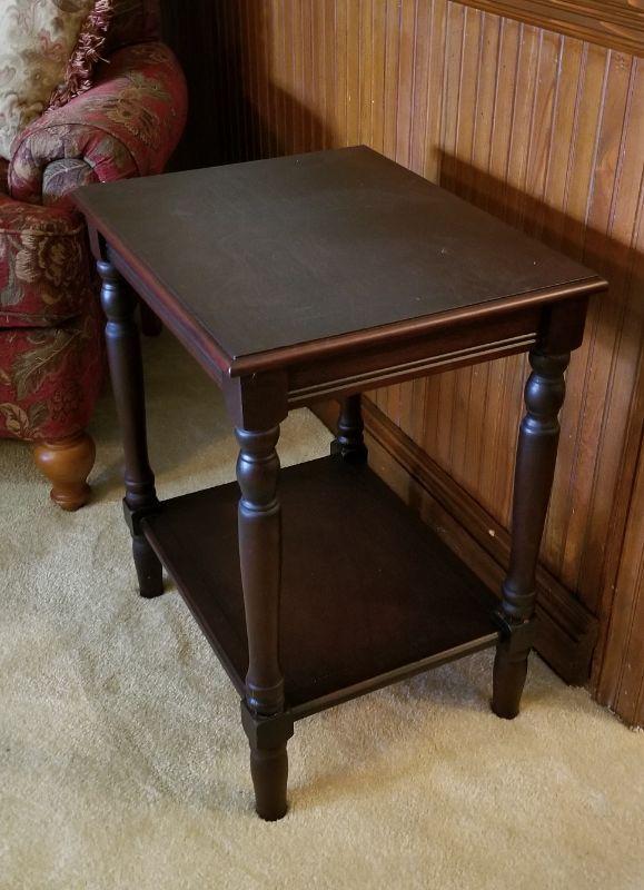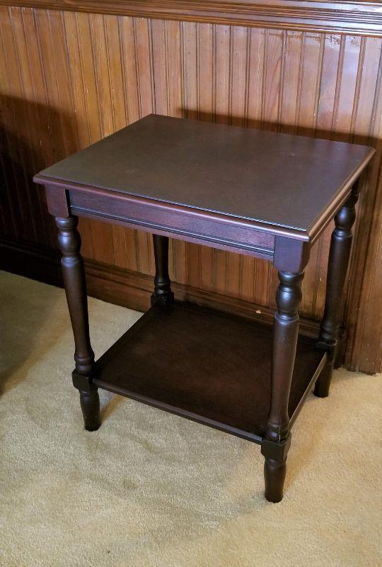 Contemporary side table in a classic style. Excellent condition. Measures 20" x 15.75", 2 feet tall.