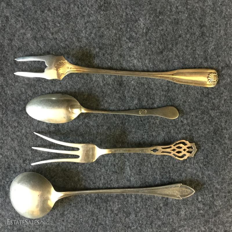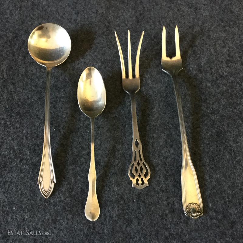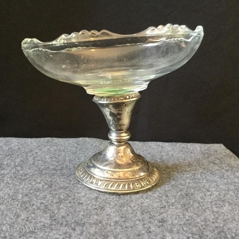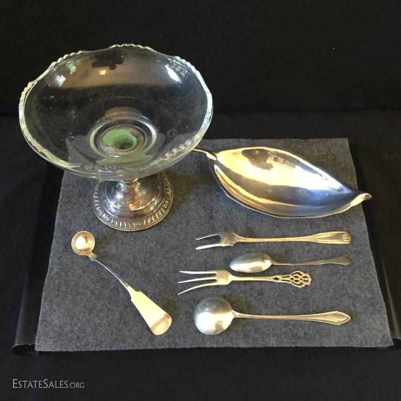 Lot 83- Sterling Silver Utensils with Glass and Silver Pedestal Dish