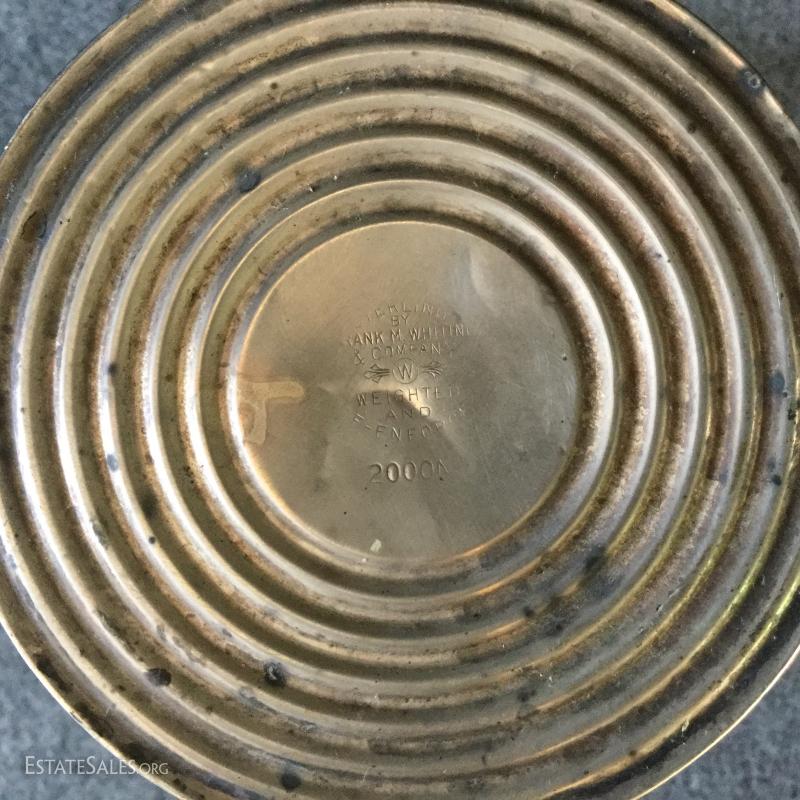 Dainty lot of Sterling Silver. Frank M. Whiting & Company pedestal dish, 5.5" Tall x 6" Diameter. Four various Sterling utensils.