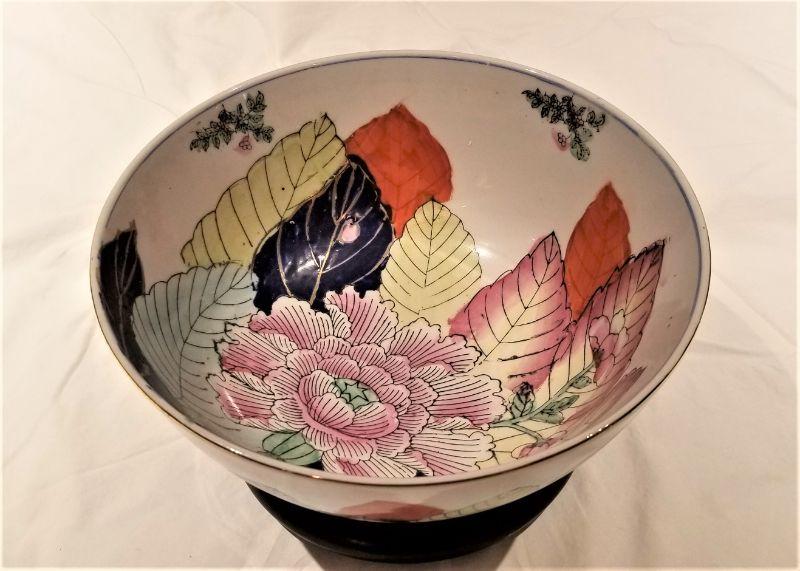Nice Chinese Style Bowl on Stand. Measures 10" across, 5" tall, not including the stand. Nice condition.