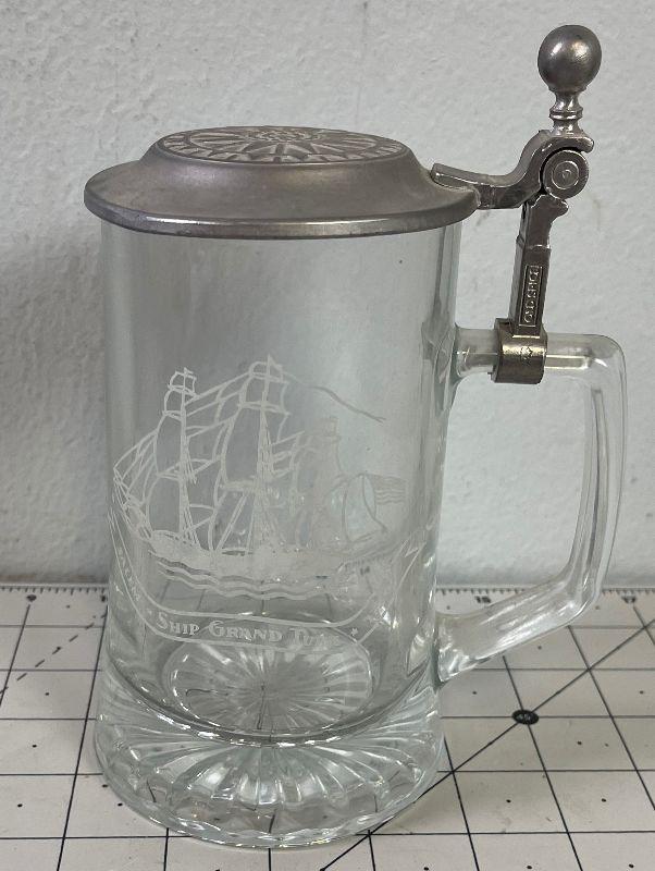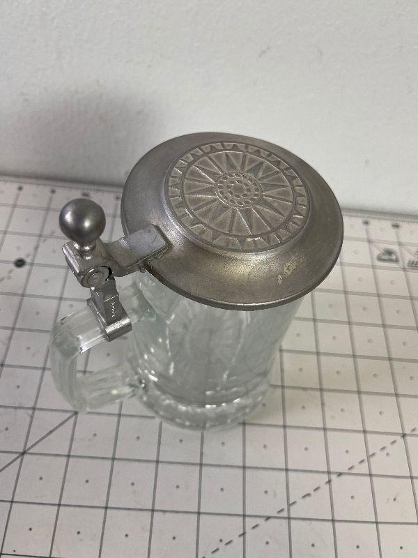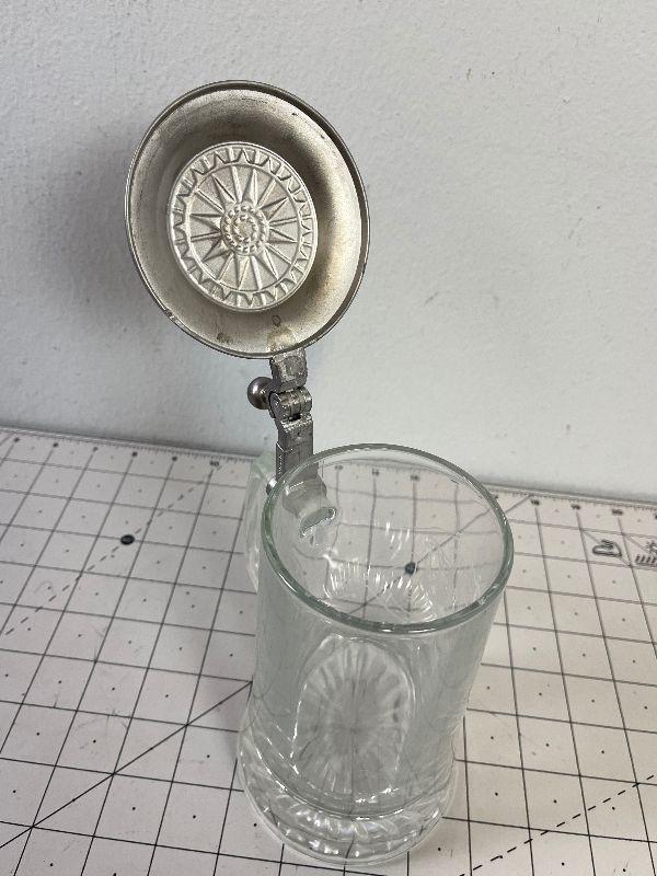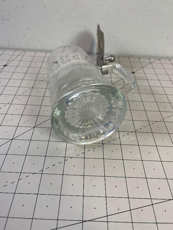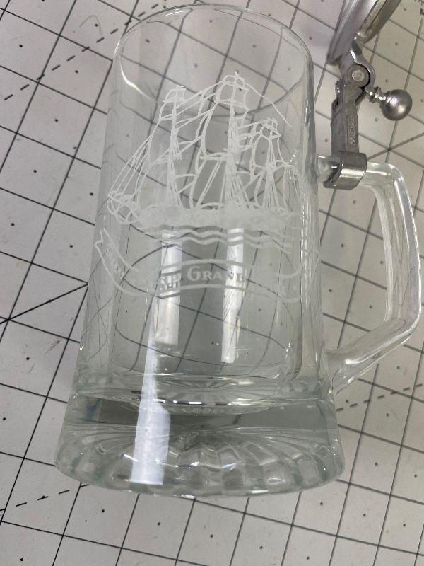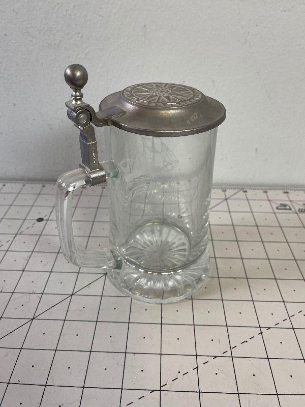Lot #83 Vintage Beer Mug Clear Glass Etched Tankard