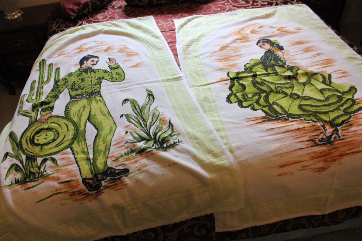 Lot 83 Vintage Italian Souvenir Towels - Man & Lady Green Cactus