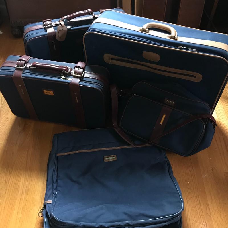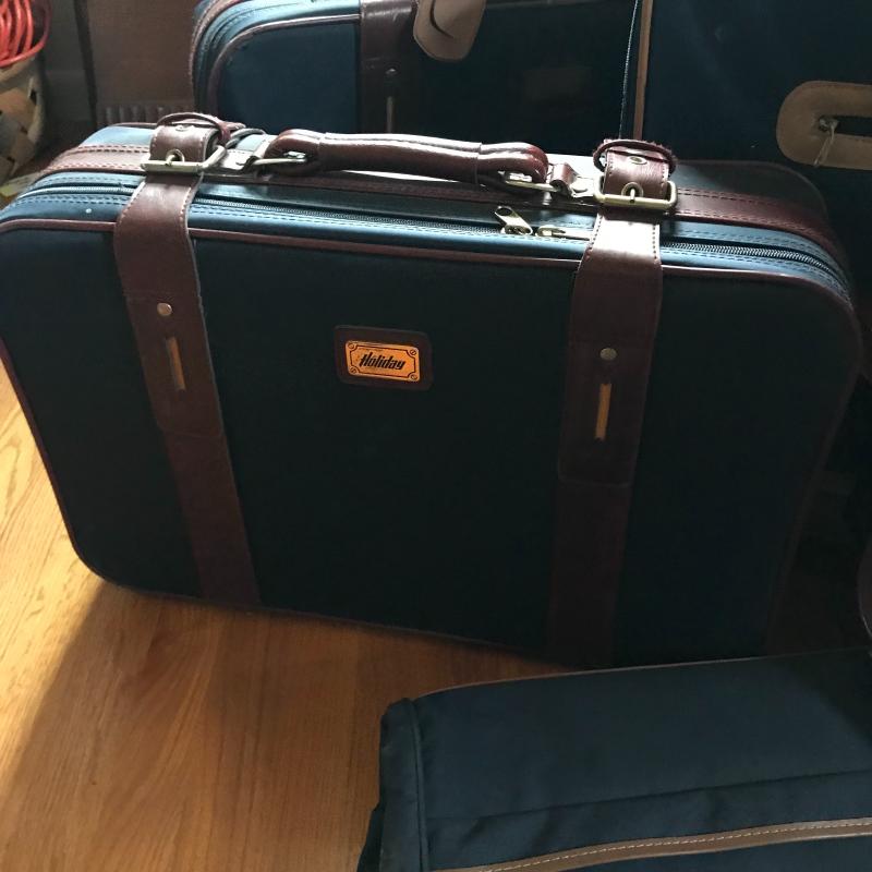 Five pieces of vintage luggage, in good condition some by Holiday. Largest suitcase is approx. 26” x 19” x 8.5”. Lightweight pieces No shipping available. Local pickup only in Asheville, NC.