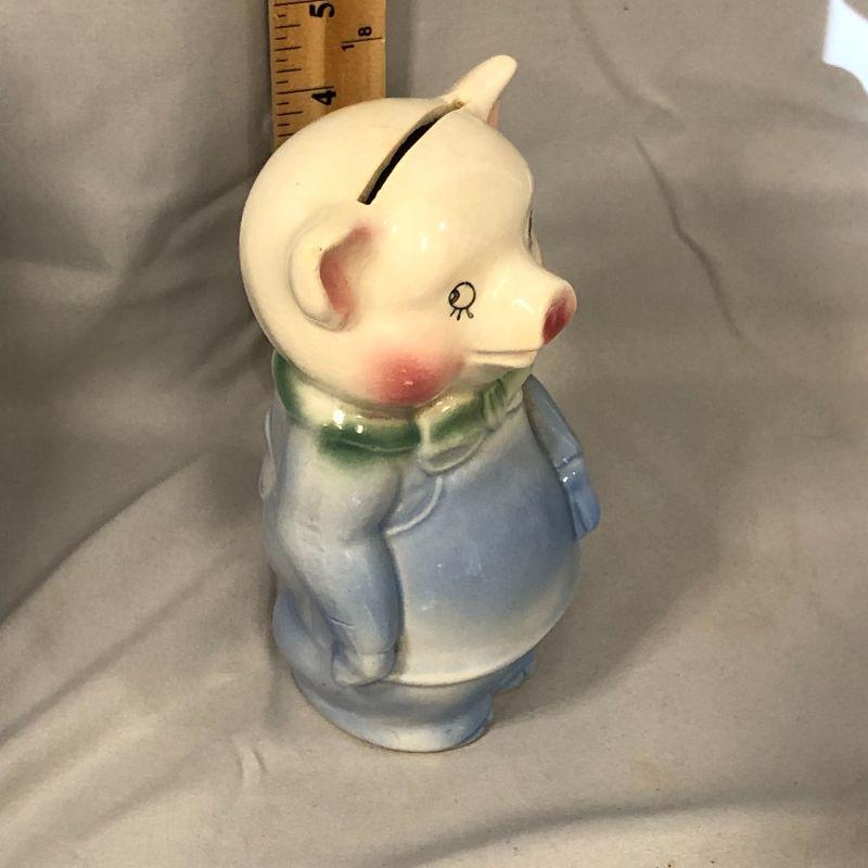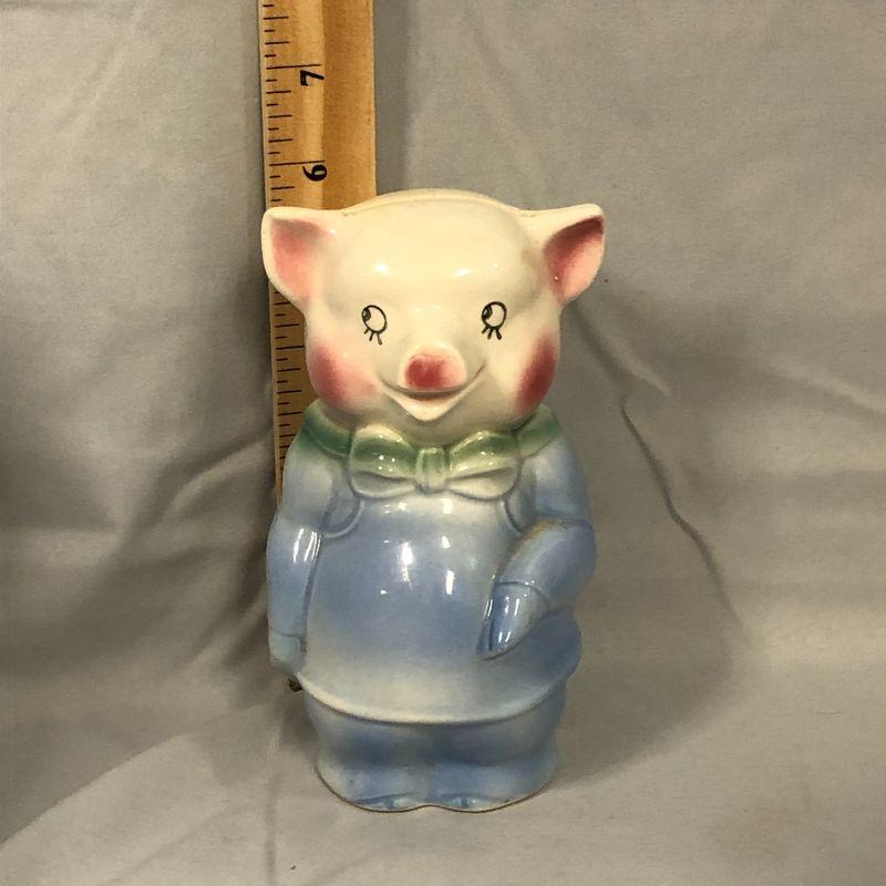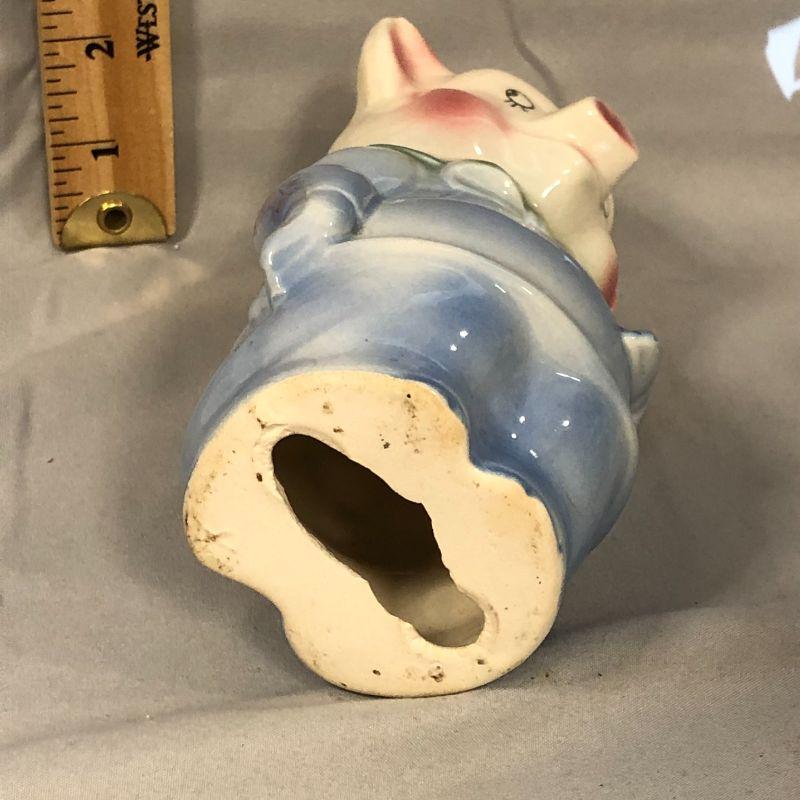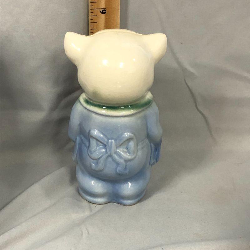 I would guess that this is from the 1940s-1960s based on the coloring and way that it is painted. It is super cute and the only issue is that it is missing a stopper. It stands about 5.75" tall.