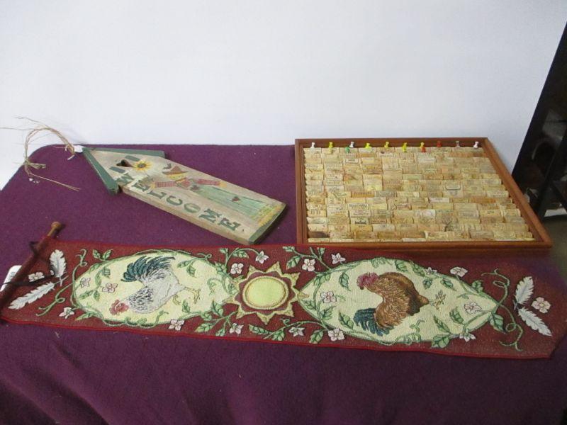 Welcome Sign, Cork Board & Rooster Chicken Banner