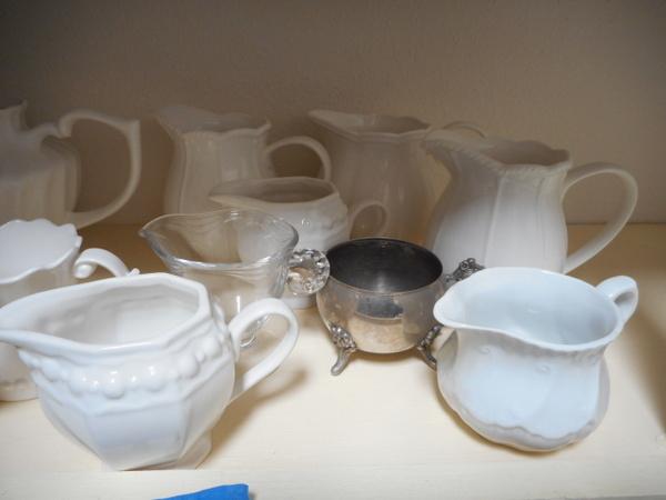 Nice assorted kitchenware - shelves are mounted to wall and are not included